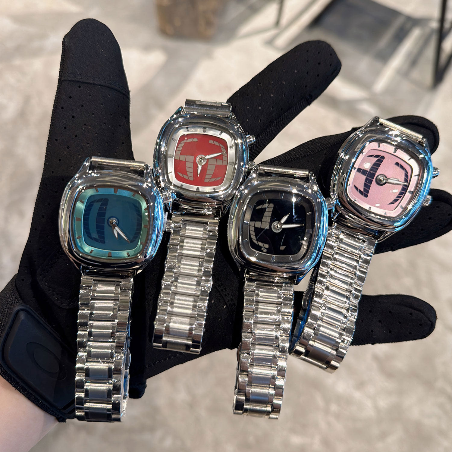 千禧年风格手表男生防水复古钢带变形数字动态手表男女石英手表潮