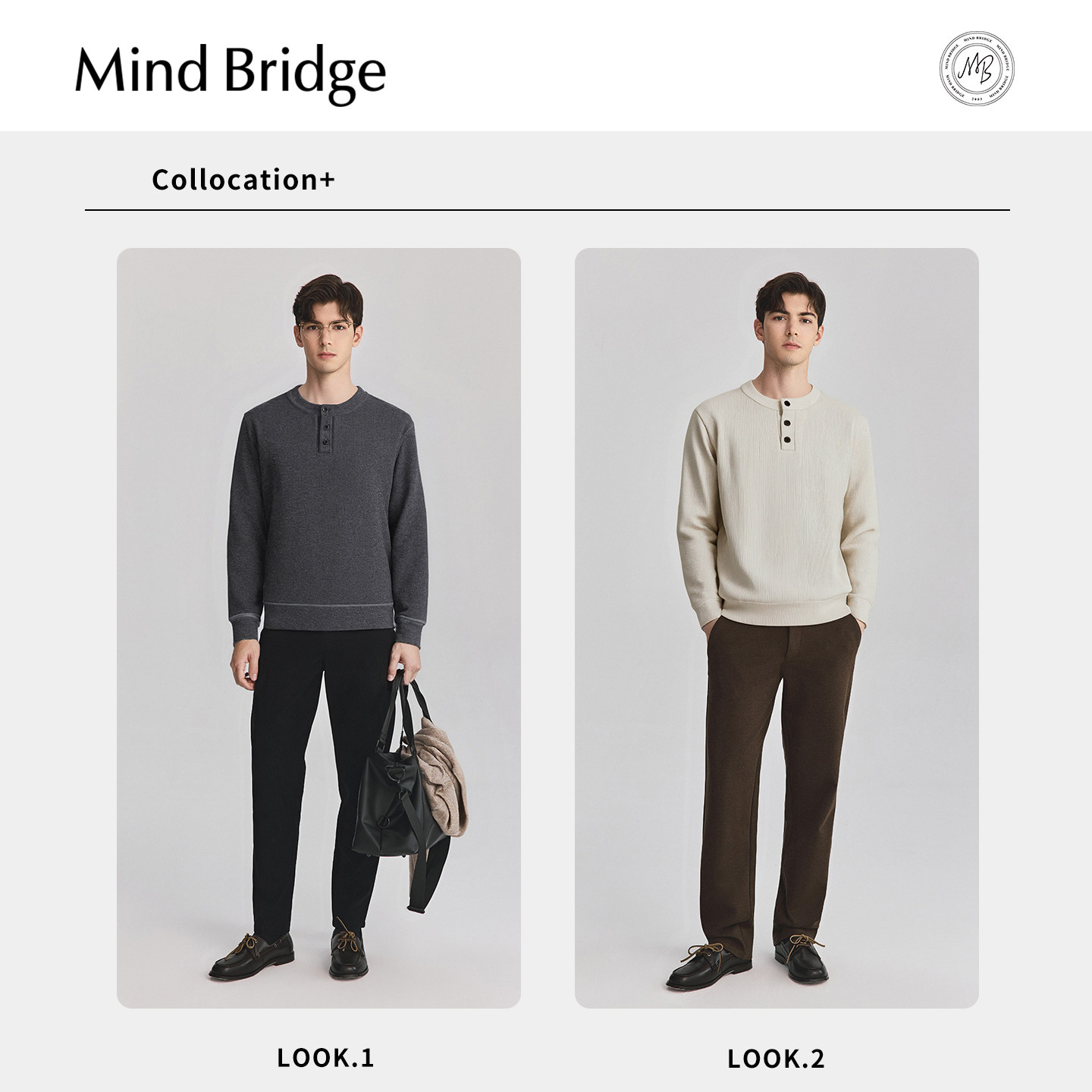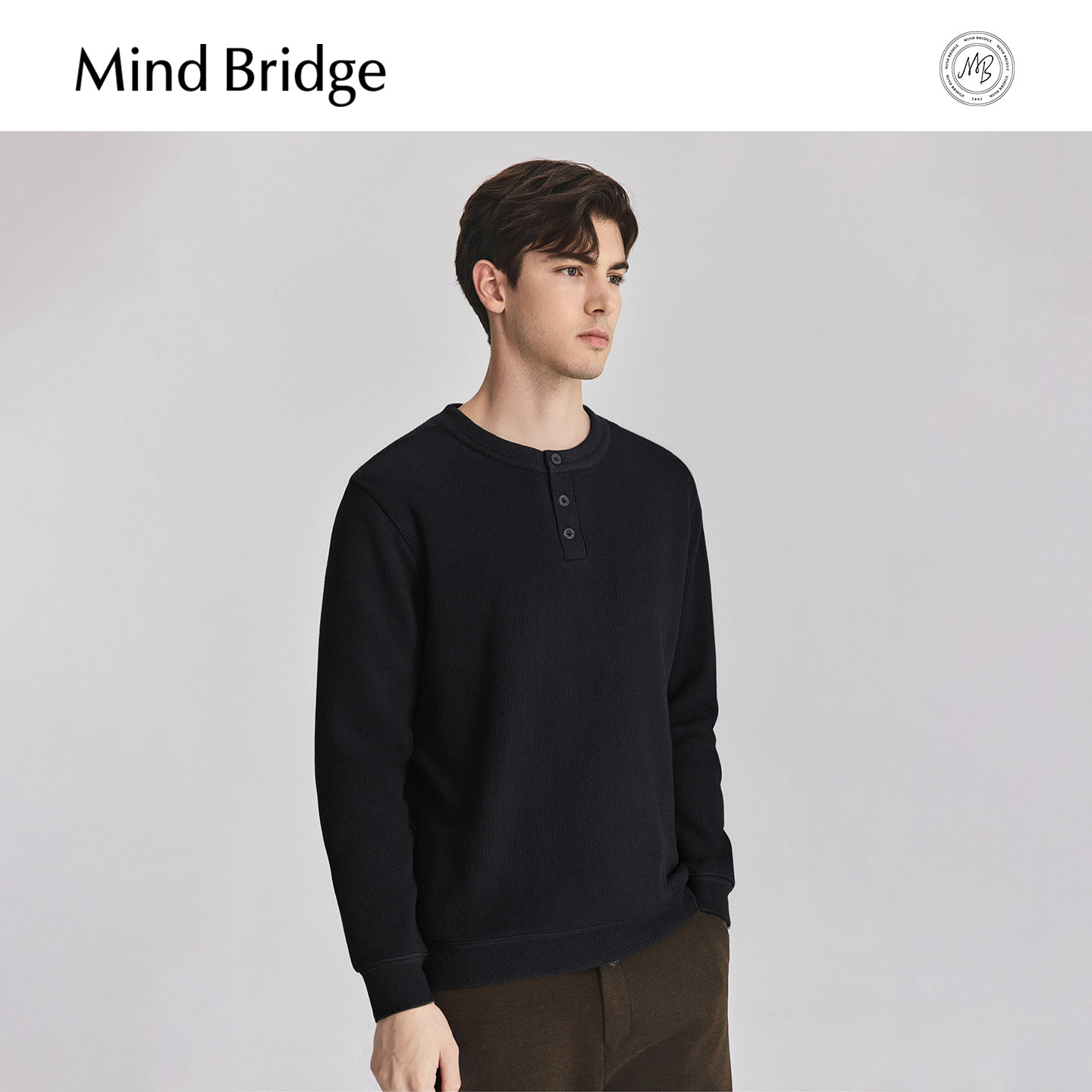 Mind Bridge【加绒加厚】2025年冬纯色上衣长袖T恤男士亨利领卫衣