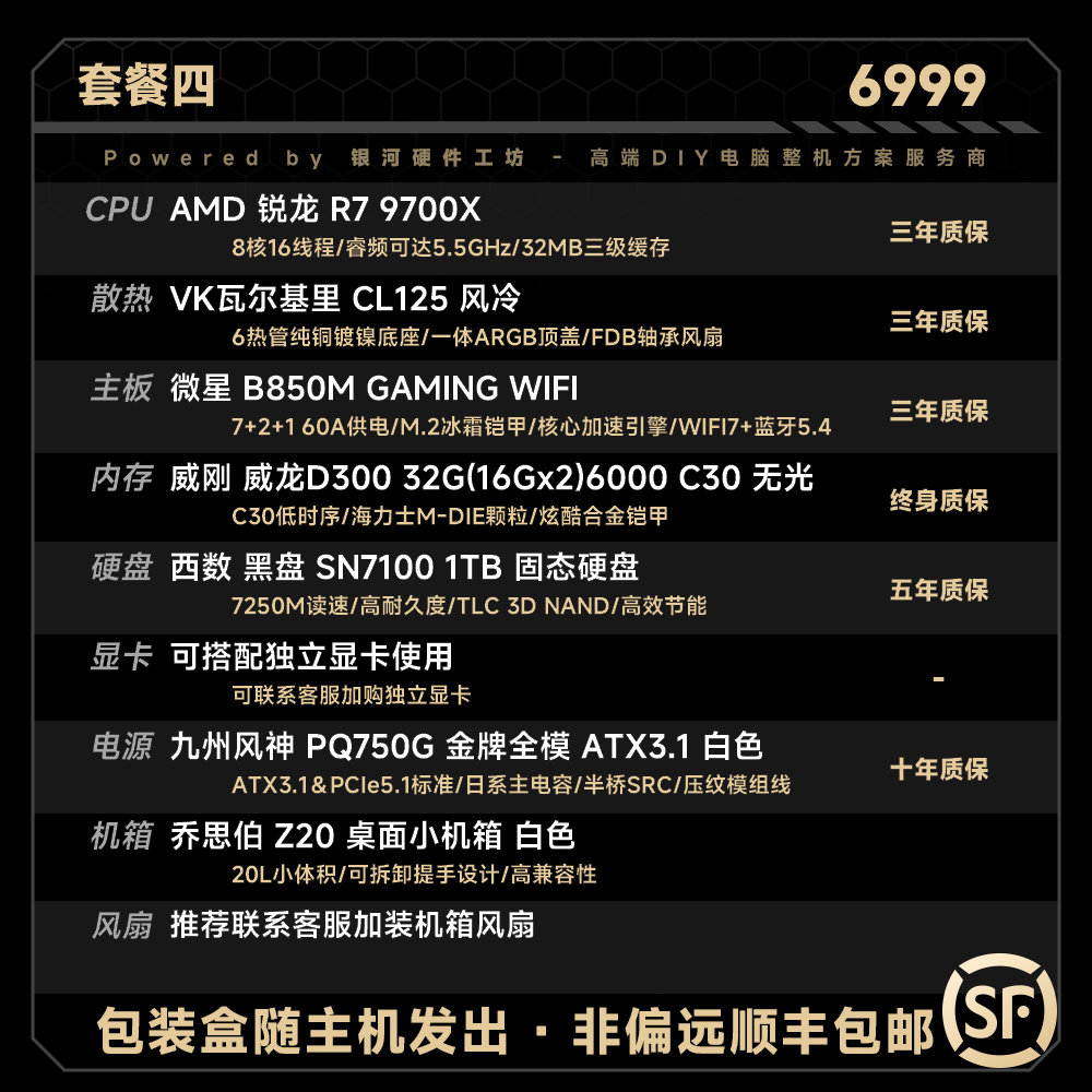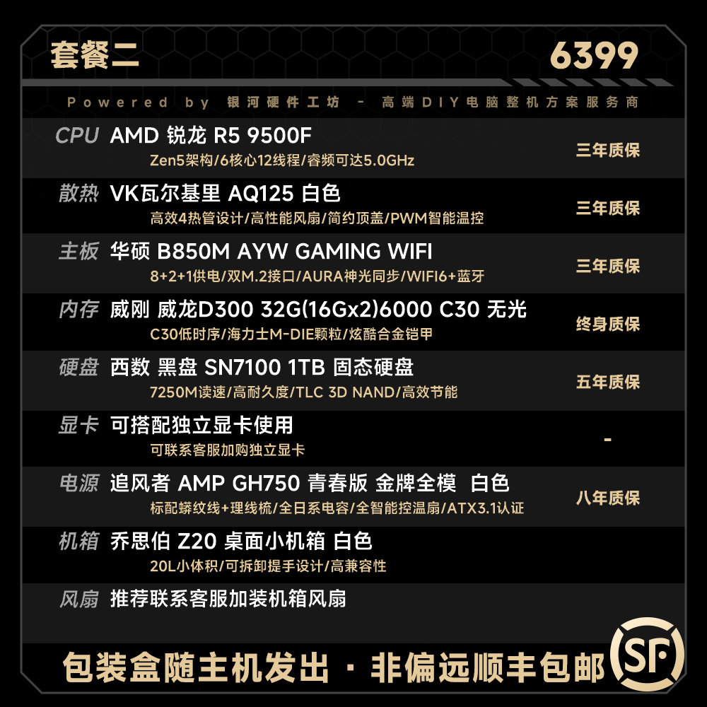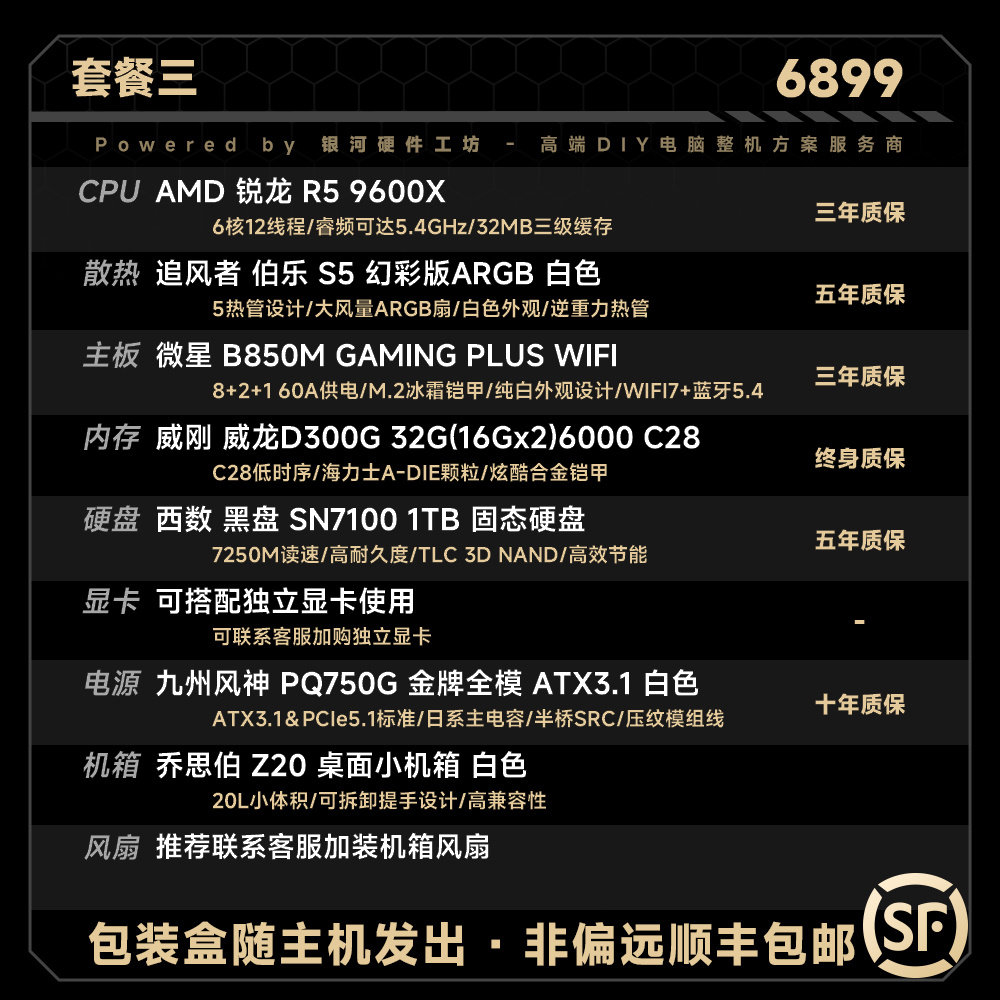 Z20白色14600KF/9700X/9800X3D无显卡手提宿舍游戏迷你电脑主机