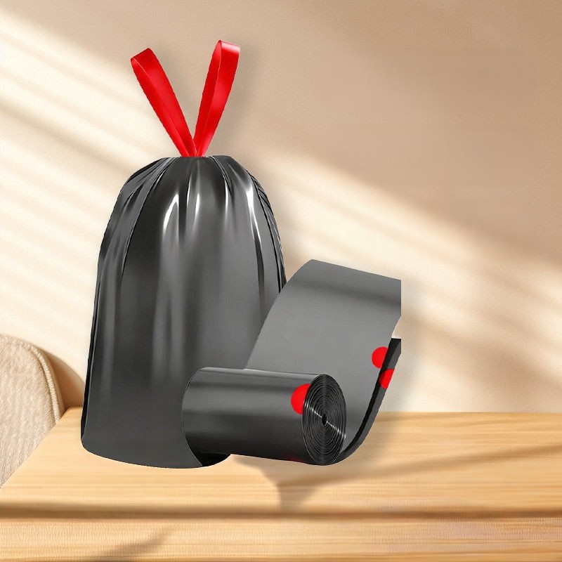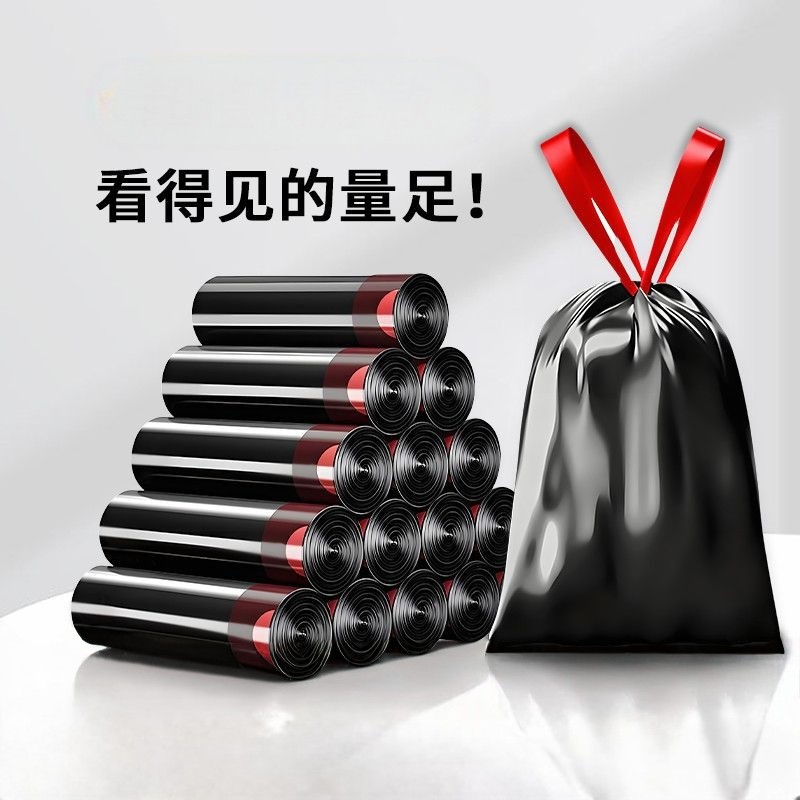 抽绳式垃圾袋家用加厚手提厨房宿舍用学生大号黑色塑料袋提拉收口