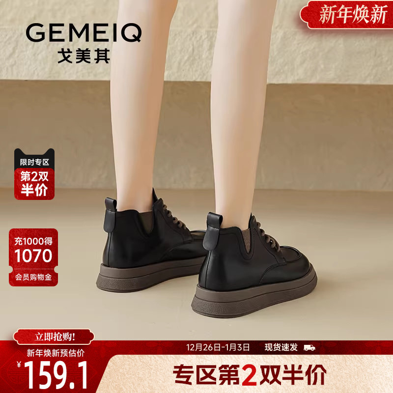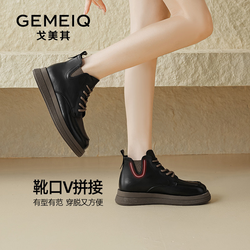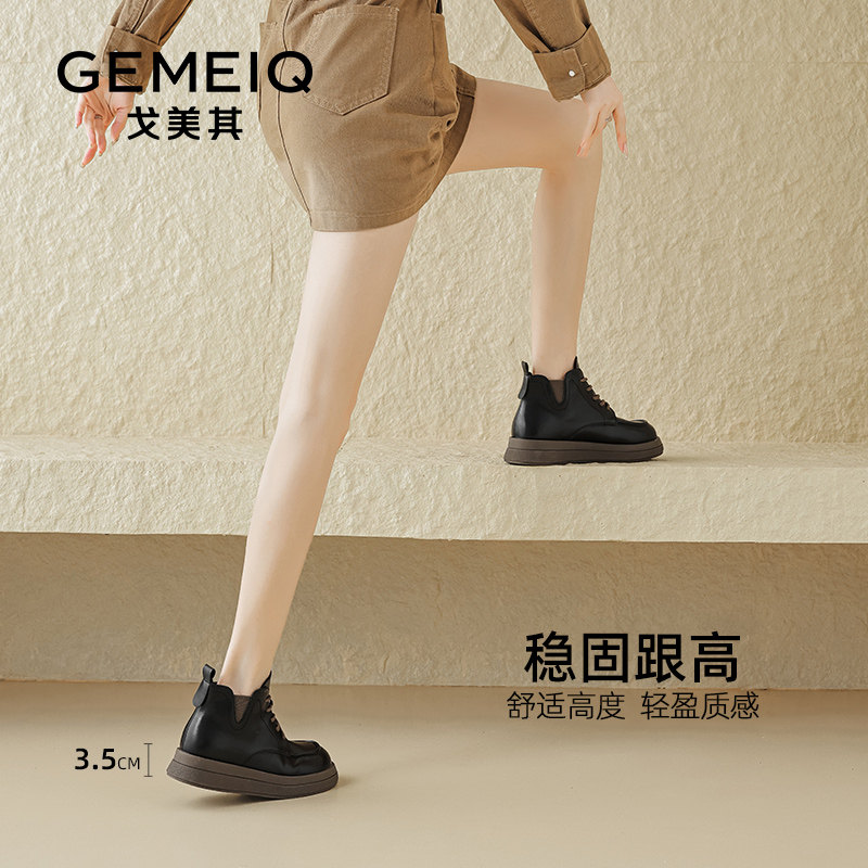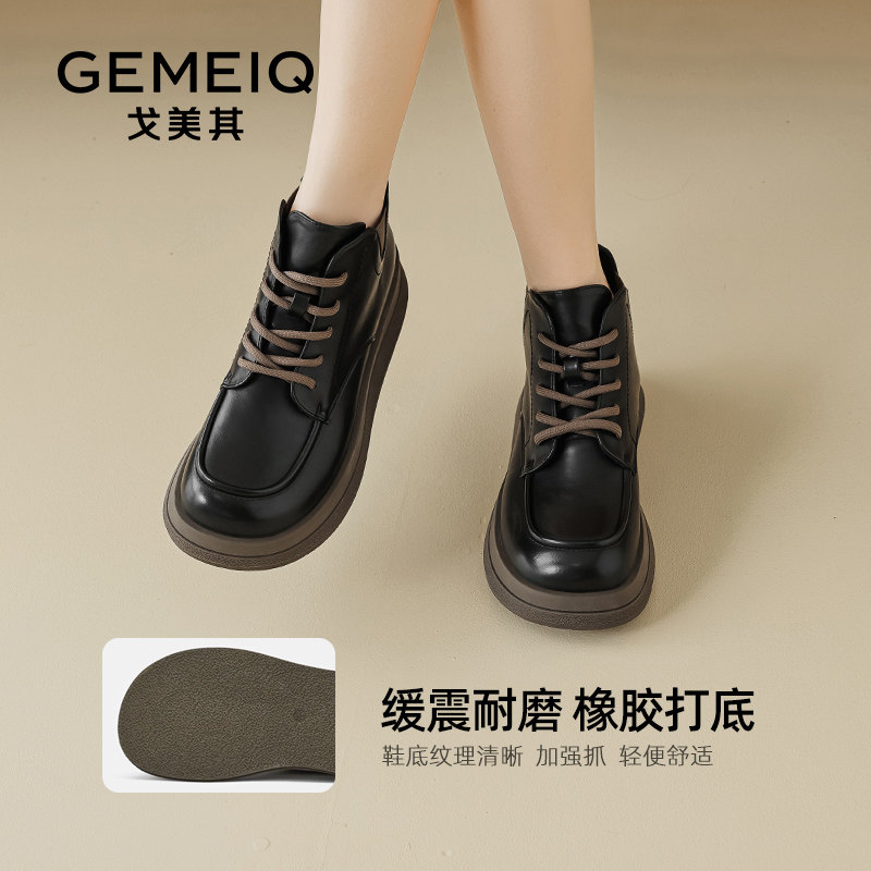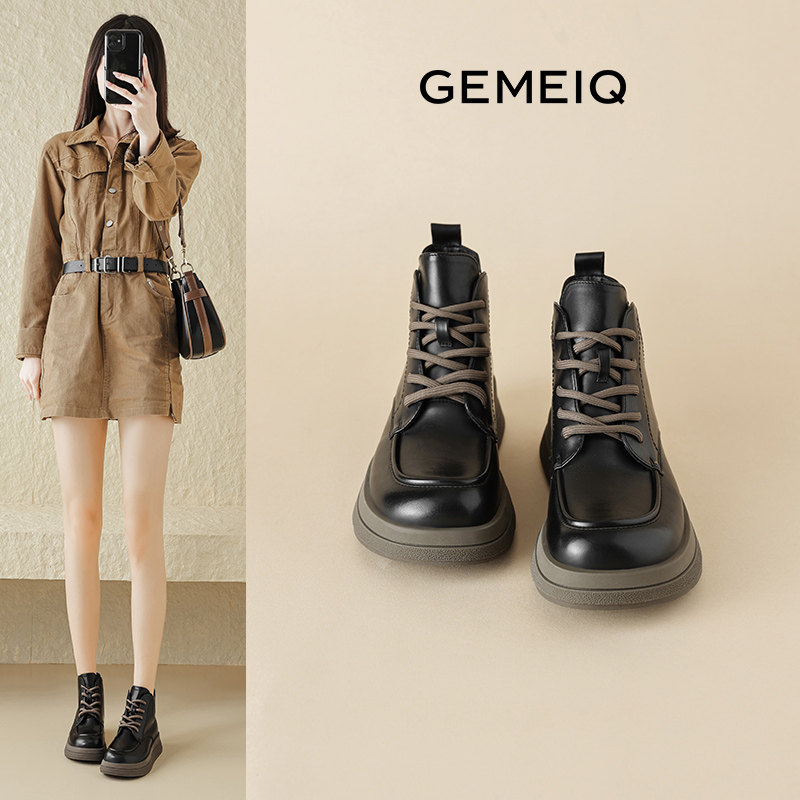 戈美其厚底马丁靴2024春秋新款单靴平底炸街英伦风靴子女加绒短靴