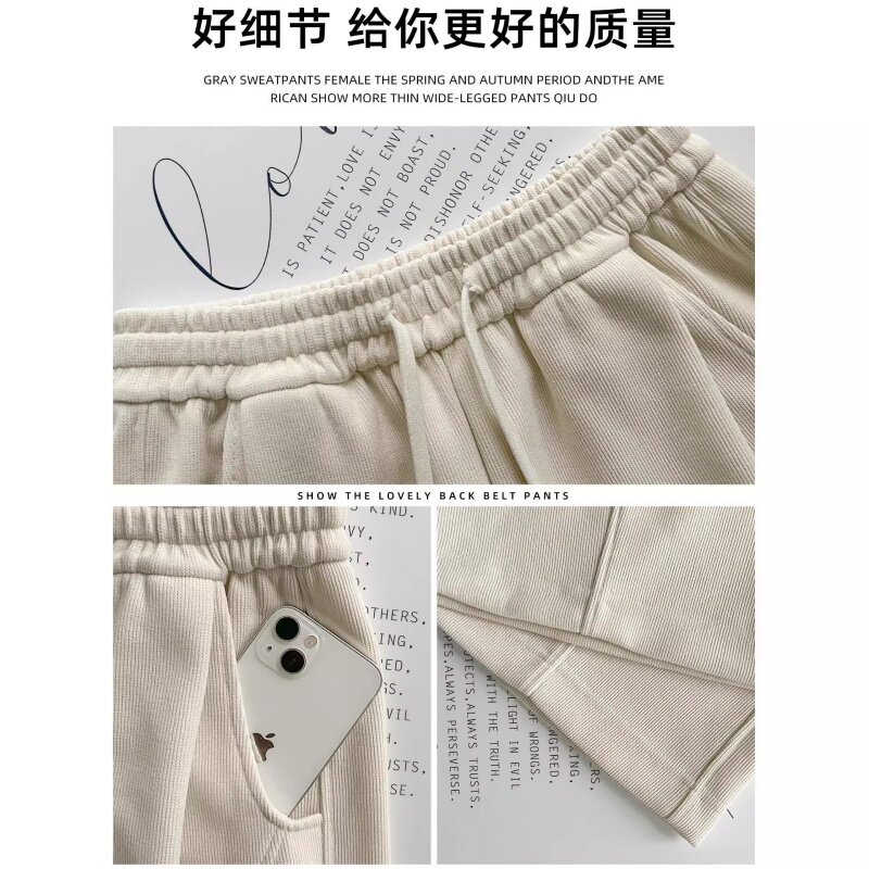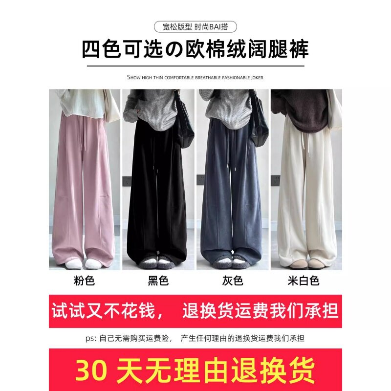 粉色灯芯绒阔腿裤子女秋冬高腰显瘦休闲运动百搭显瘦加绒卫裤大码