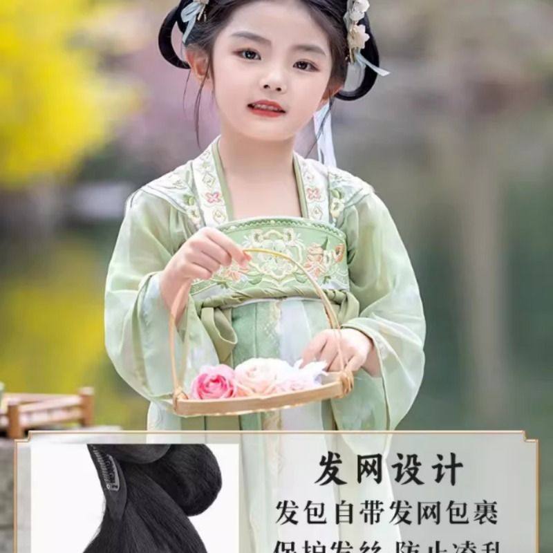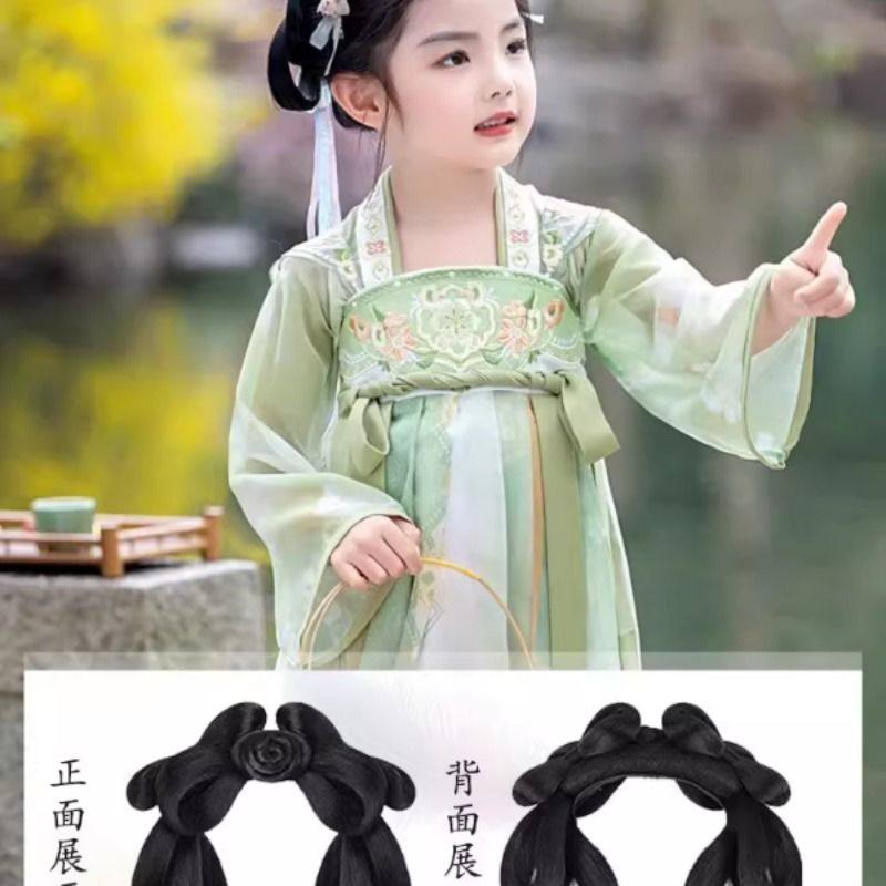 儿童汉服假发一体式懒人发髻女童古装日常造型盘发古风头饰垫发包
