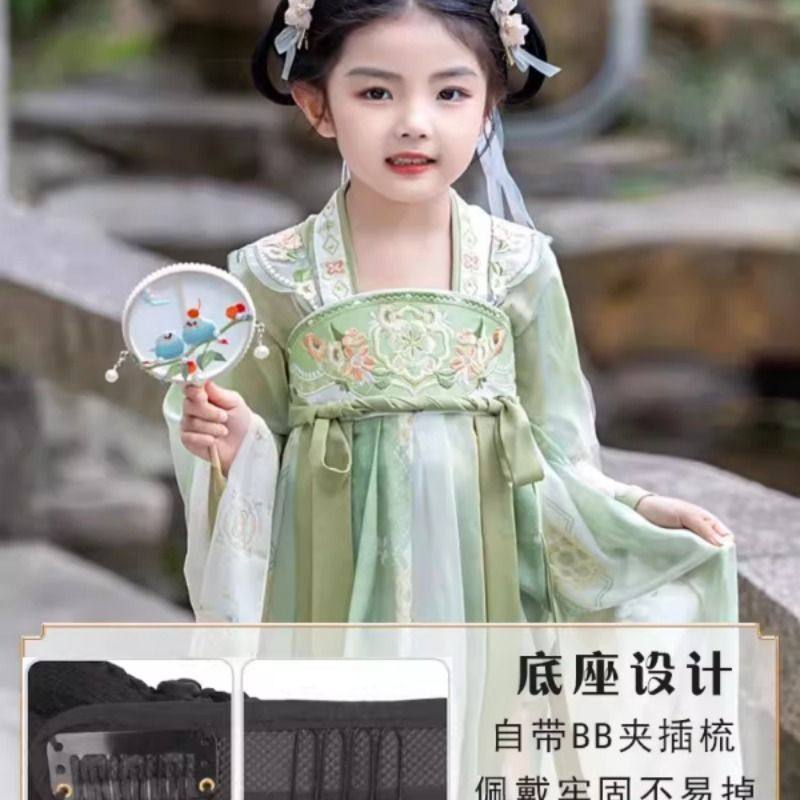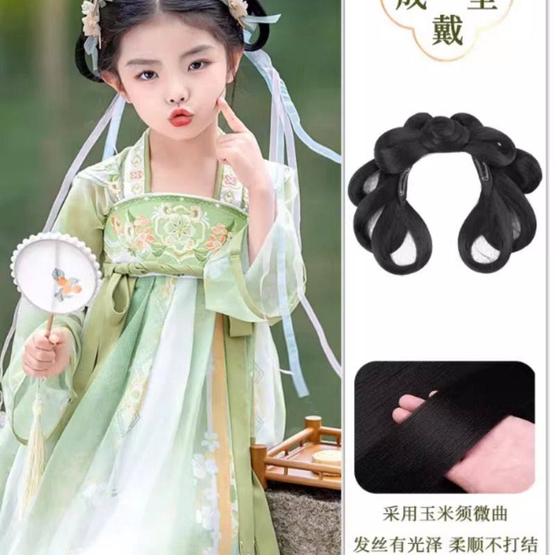 儿童汉服假发一体式古风盘发发髻女童蝴蝶结发包古装头饰垫发造型