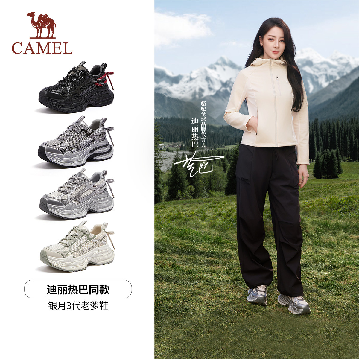 迪丽热巴同款|骆驼户外银月2代老爹鞋新款厚底徒步鞋户外休闲鞋女