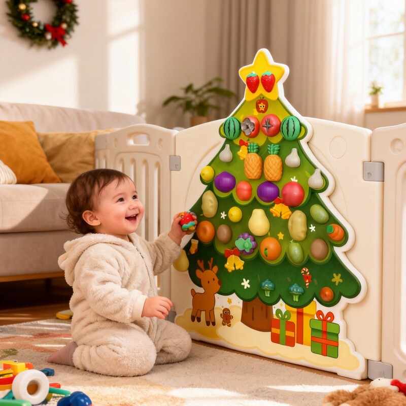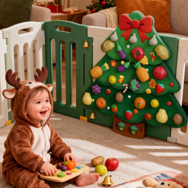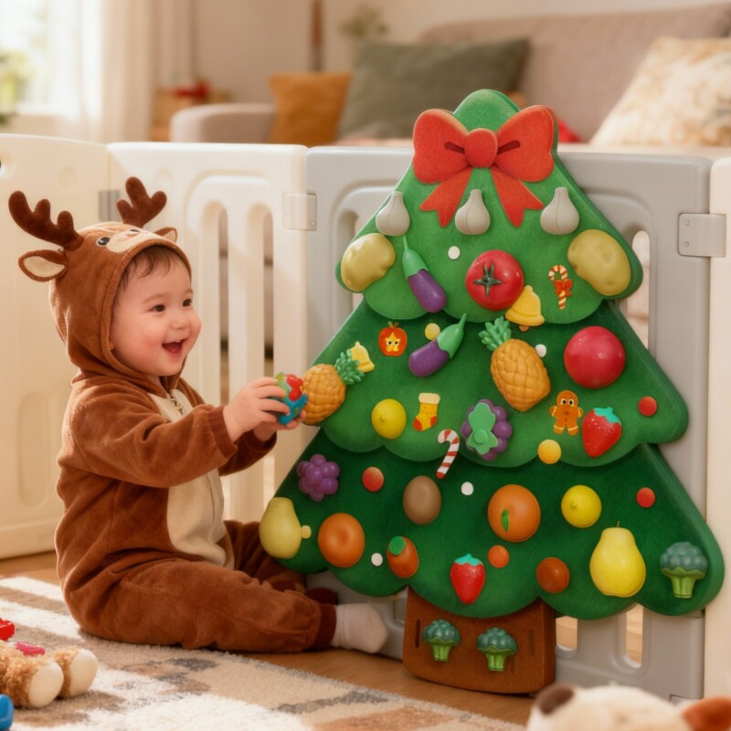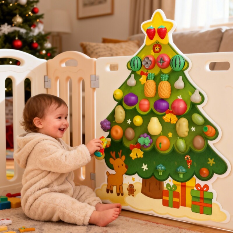 圣诞树毛毡板水果切切乐玩具忙碌板围栏DIY果蔬粘粘摘摘乐切菜配件婴儿童蒙氏早教益智墙上壁挂幼儿园过家家