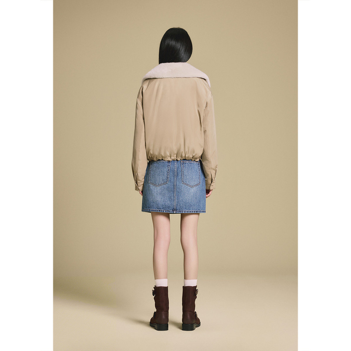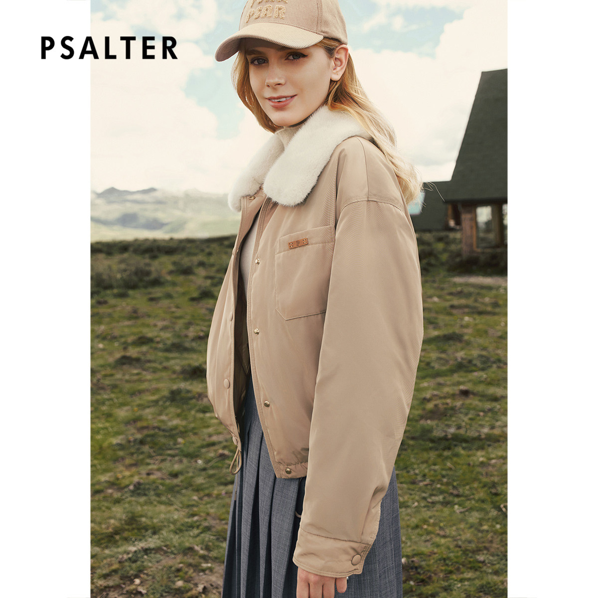 PSALTER诗篇学院风短款水貂毛领鹅绒羽绒服2025冬季新款