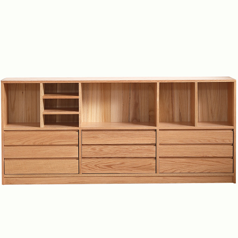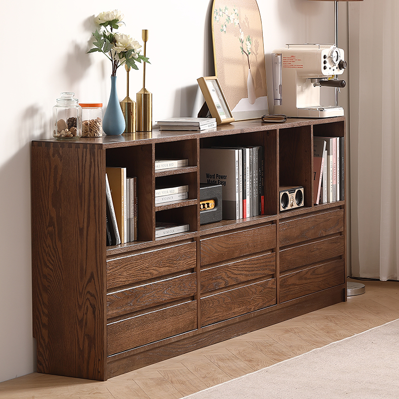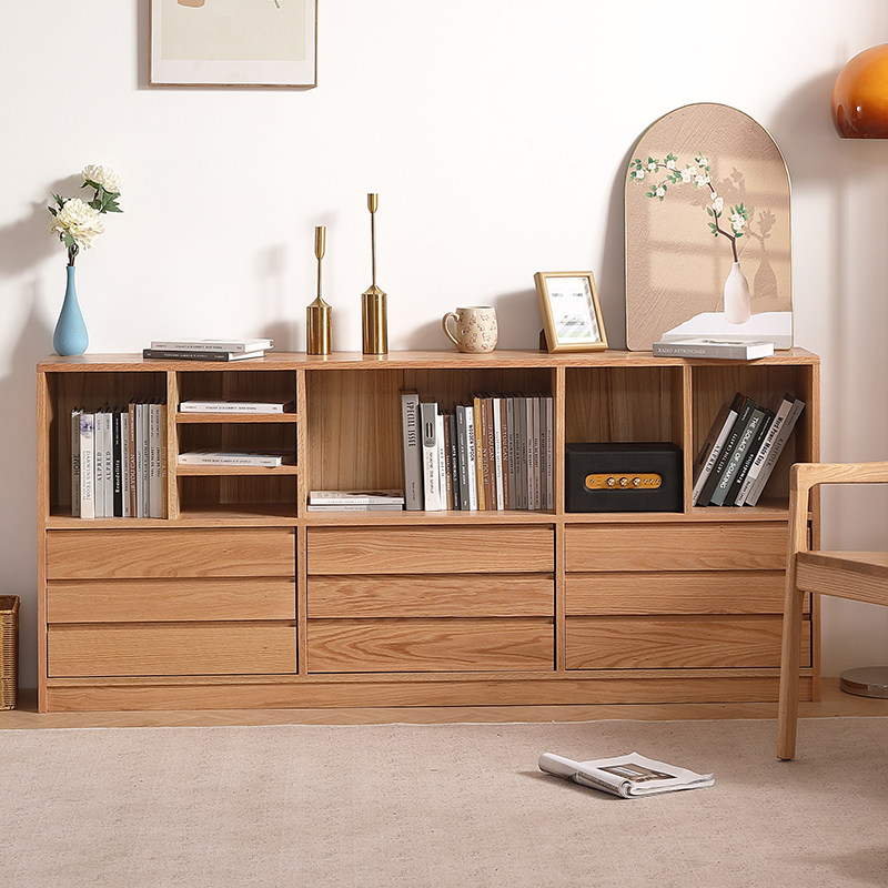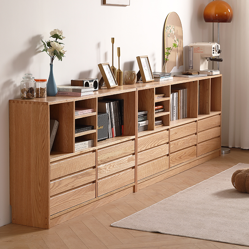 美国红橡木纯实木书架落地客厅电视柜满墙整北欧矮收纳抽屉柜组合