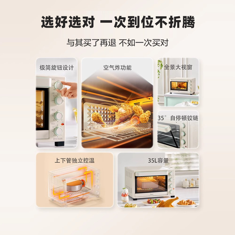 美的电烤箱35升大容量空气炸锅热风循环电烤炉上下管独立控温家用
