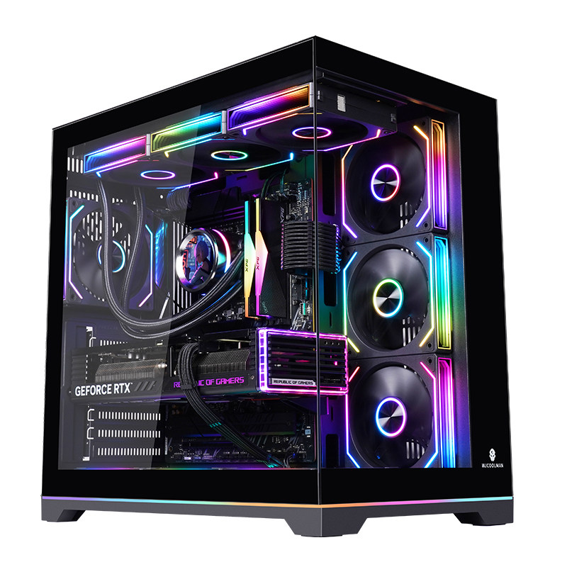玩嘉孤勇者 彩虹版海景房电脑机箱360水冷MATX主板ARGB灯条机箱