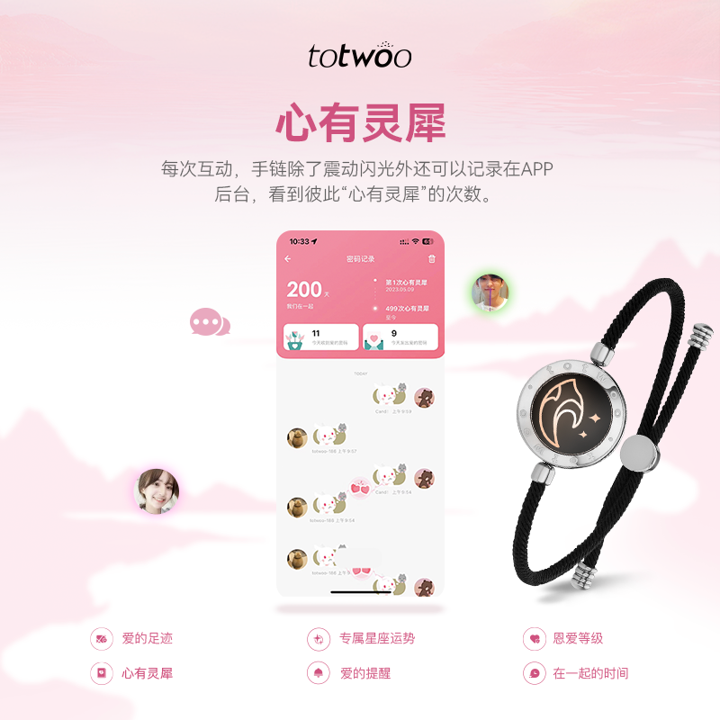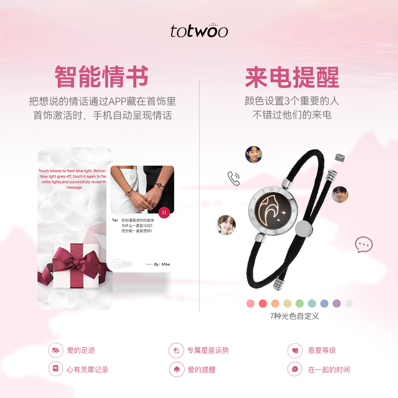 totwoo山盟海誓震动感应手链智能互动异地恋情侣手环男女友礼物
