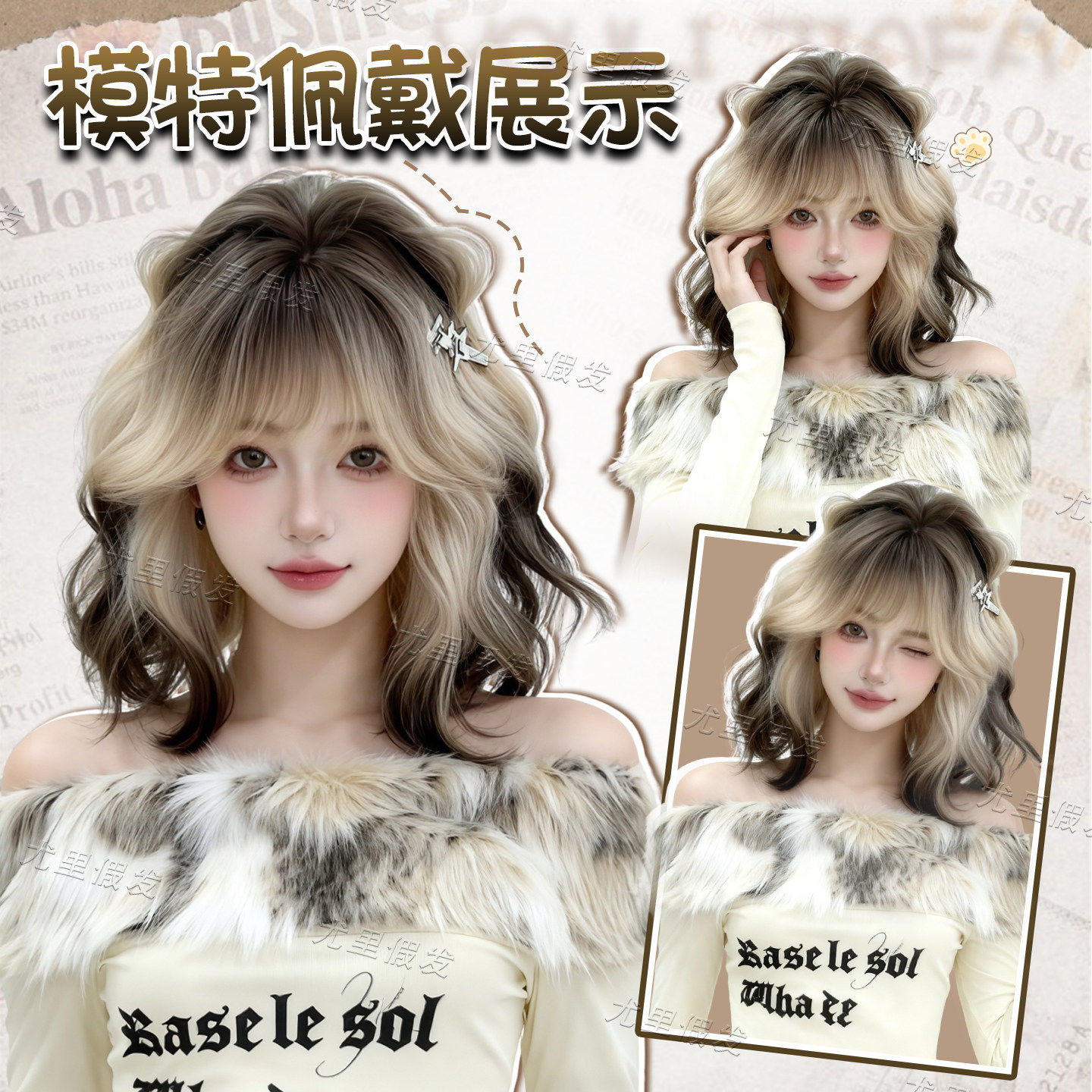 小熊奈奈喵喵岛假发女水母头公主切双马尾长卷发Lolita假发全头套