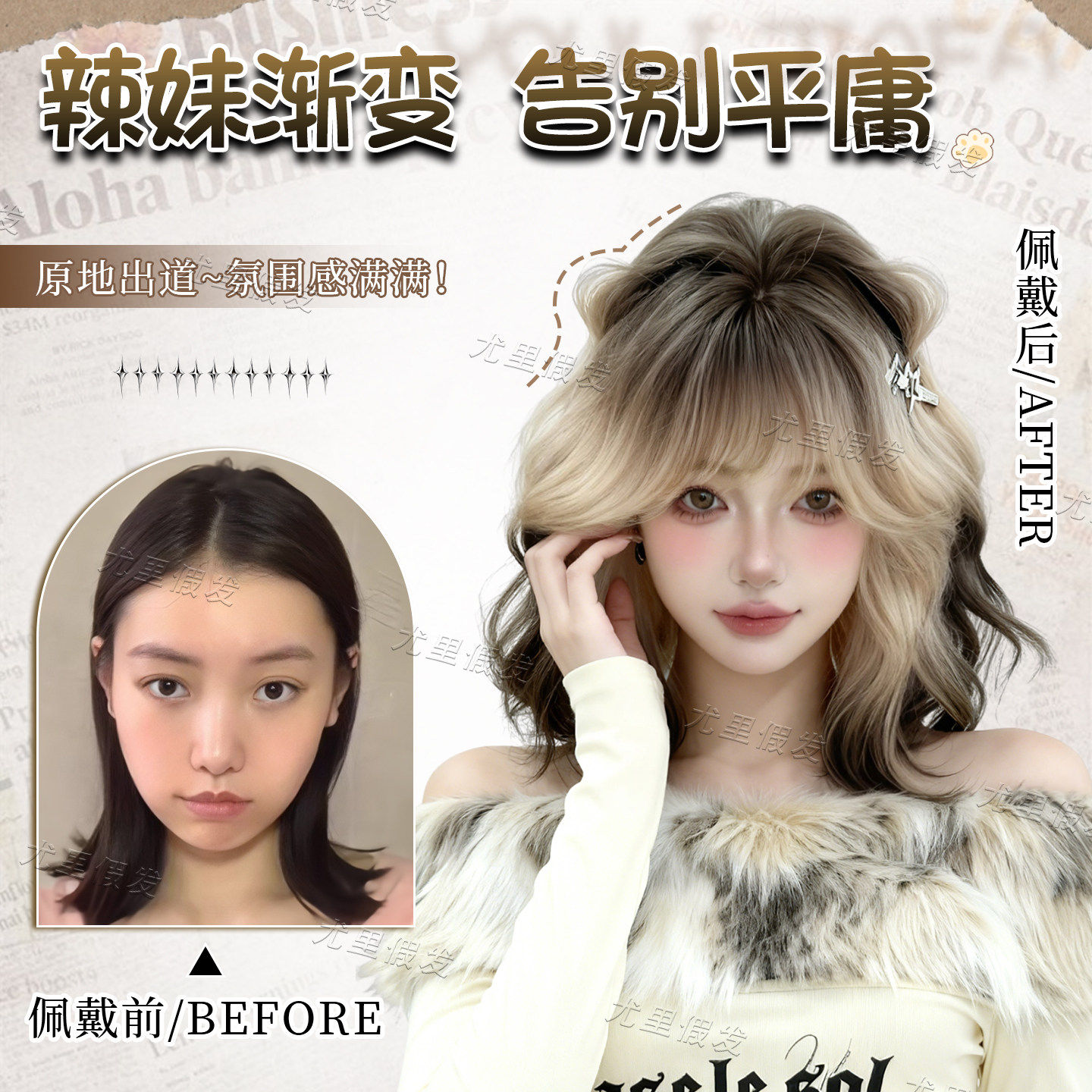 【渐变暹罗】假发女羊毛卷短发黑金渐变混血感短卷发仿真全头套