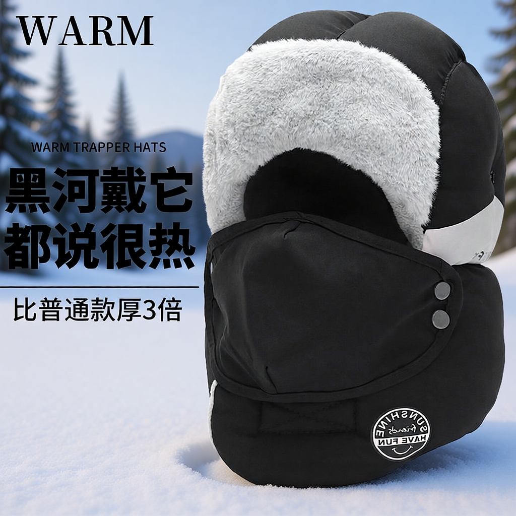 东北哈尔滨零下40度防寒保暖加绒加厚雷锋帽骑行装备防风冬季护耳