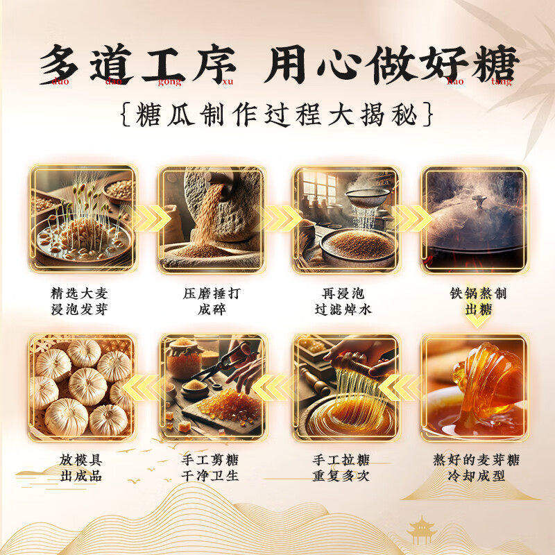 正宗纯手工糖瓜粘老式麦芽糖山东陈楼灶糖怀旧糖果零食官方旗舰店
