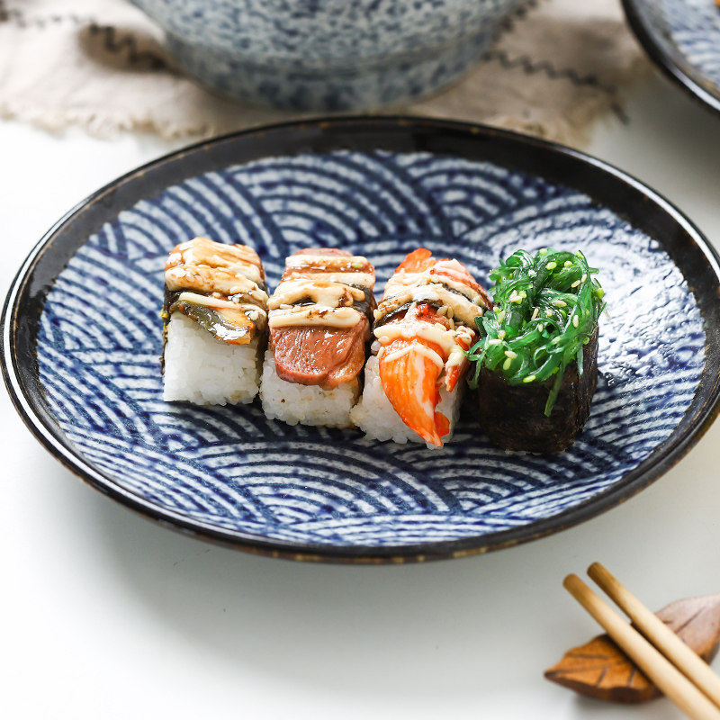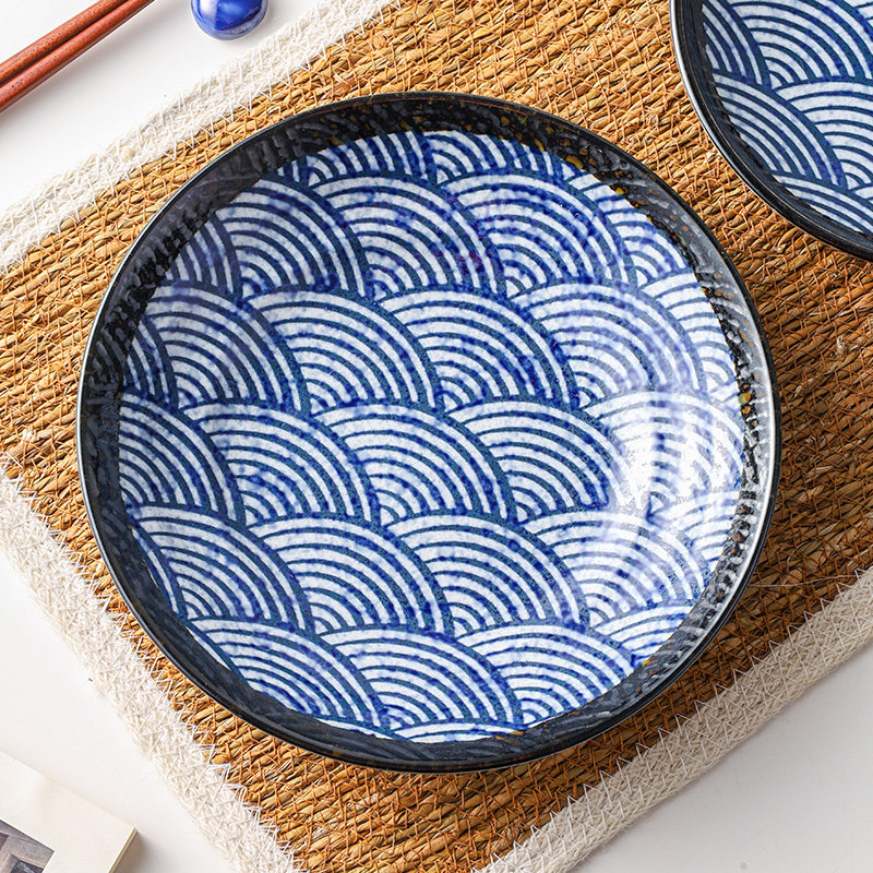小鹿田烧 青海波日本进口陶瓷日式餐具碗菜盘碟套装家用创意网红