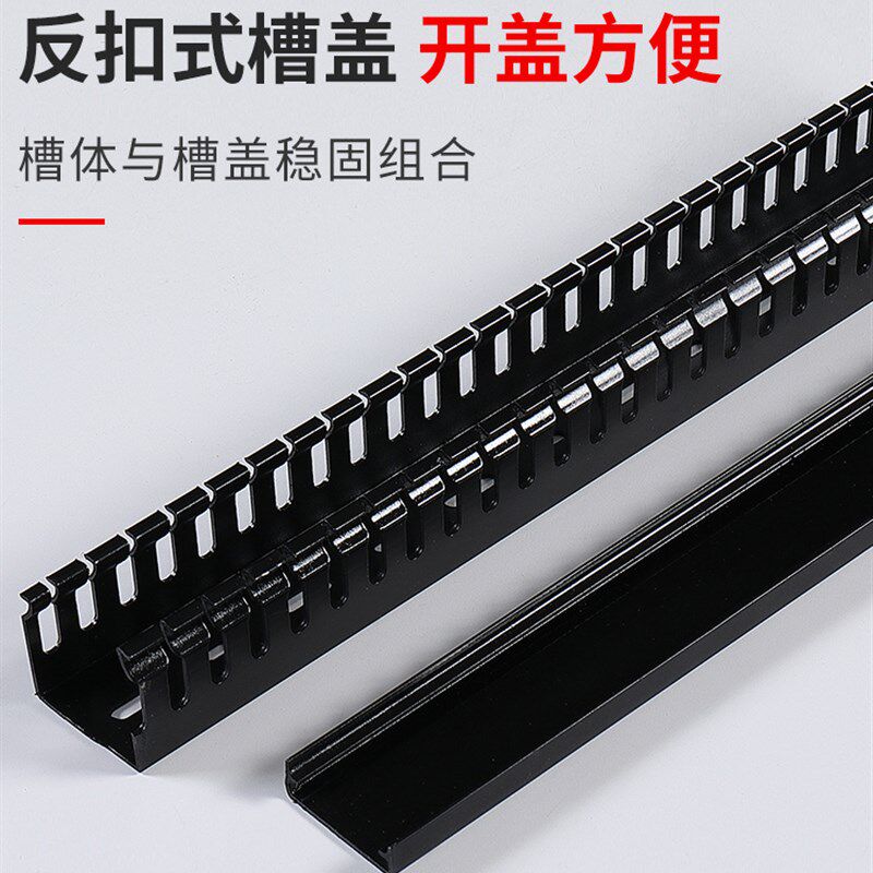 pvc塑料阻燃工业行线槽配电箱柜u型配线槽黑色明装理线布线走线槽