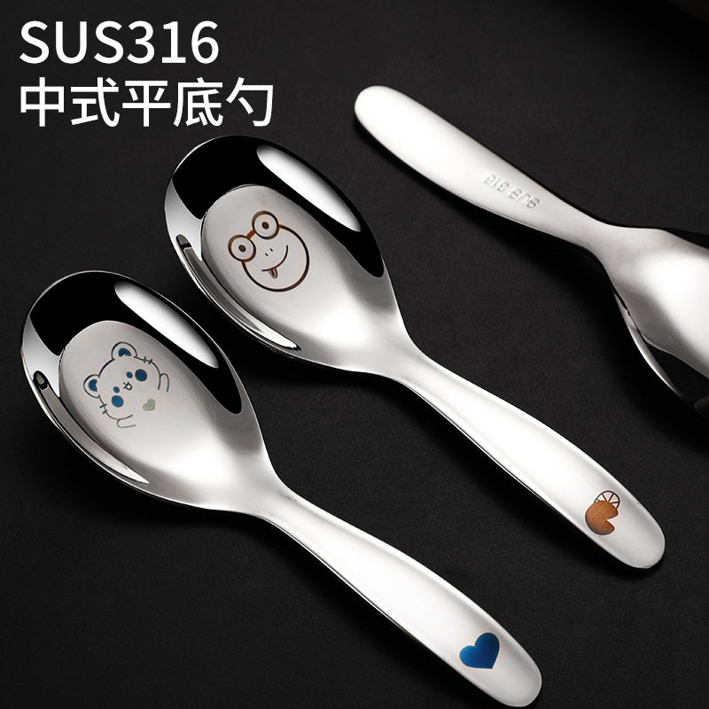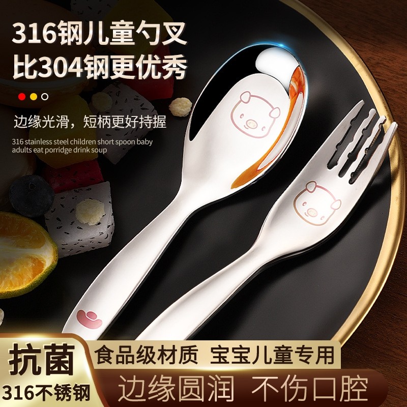 316不锈钢宝宝儿童勺子叉子婴儿饭勺汤勺吃饭小勺子元宝勺食品级