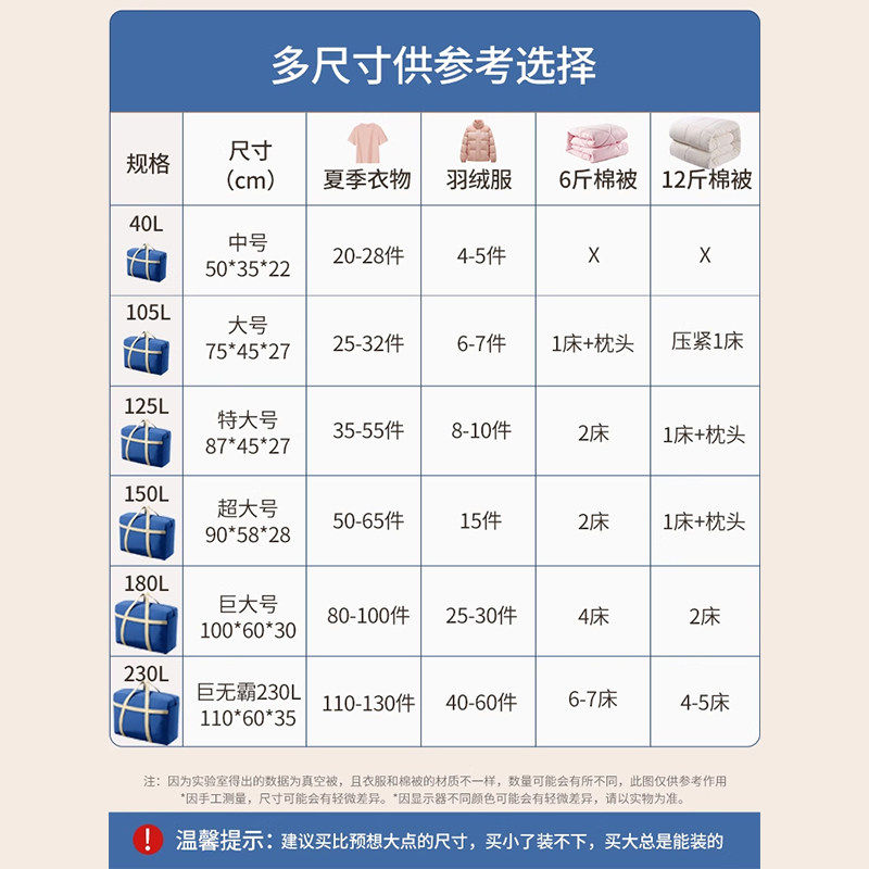 巨无霸大容量被子收纳袋棉被衣服防尘储物袋搬家打包袋手提行李包