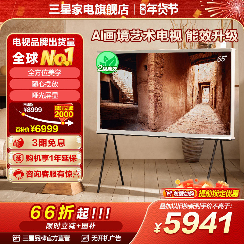 三星55LS01DB 55英寸QLED 4K AI画境艺术移动电视25年新品国补15%