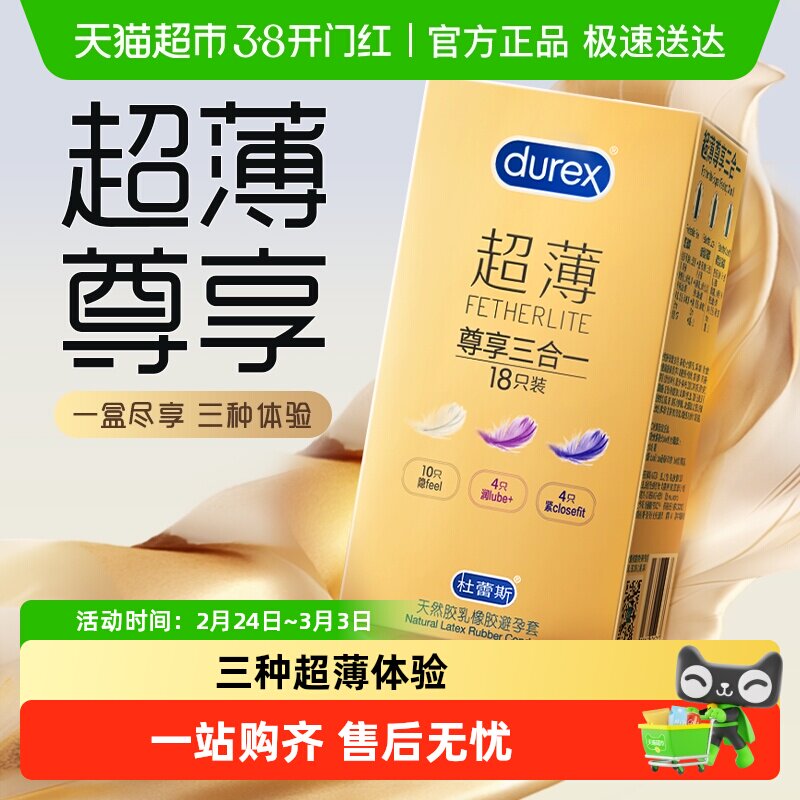 杜蕾斯避孕套超薄金尊享三合一安全套隐形套套保险套男用