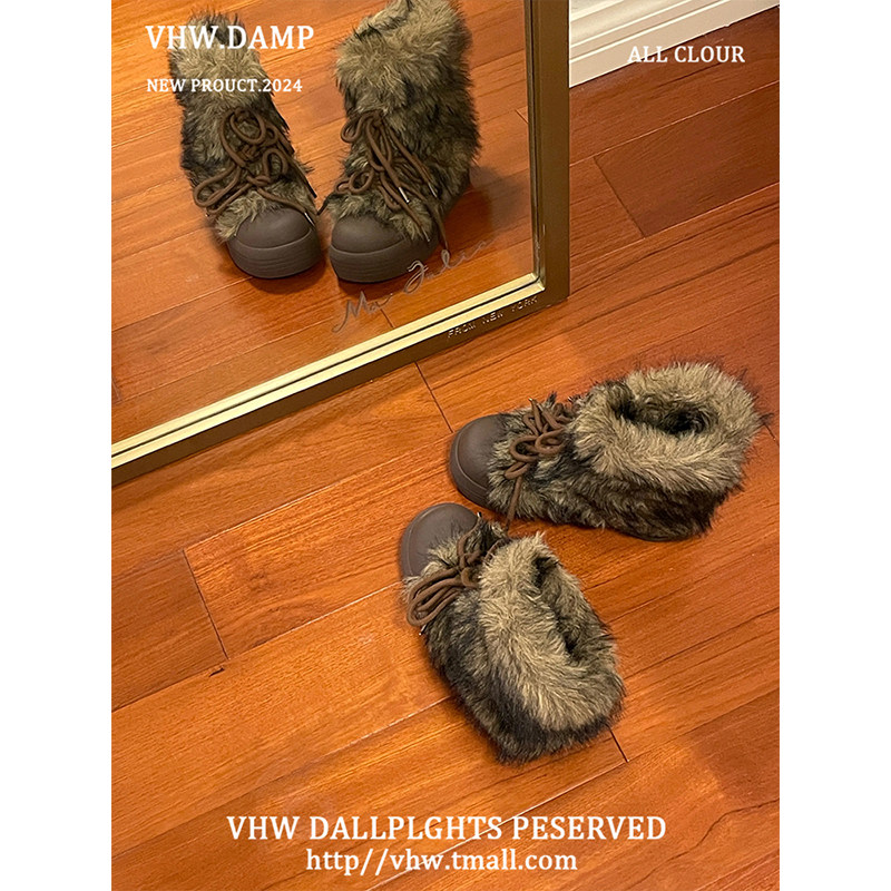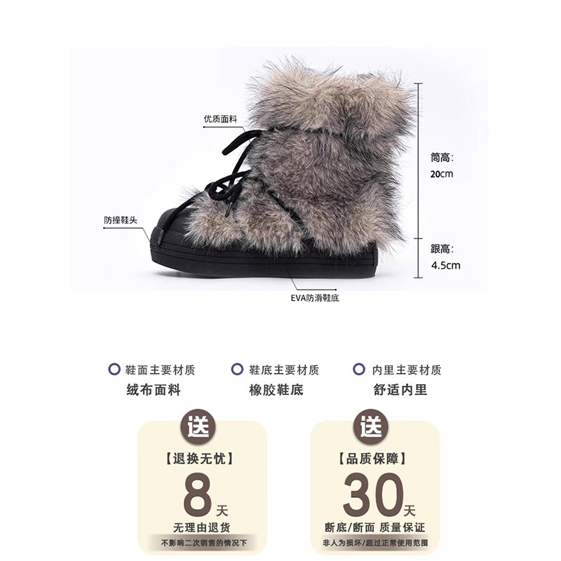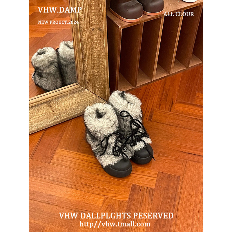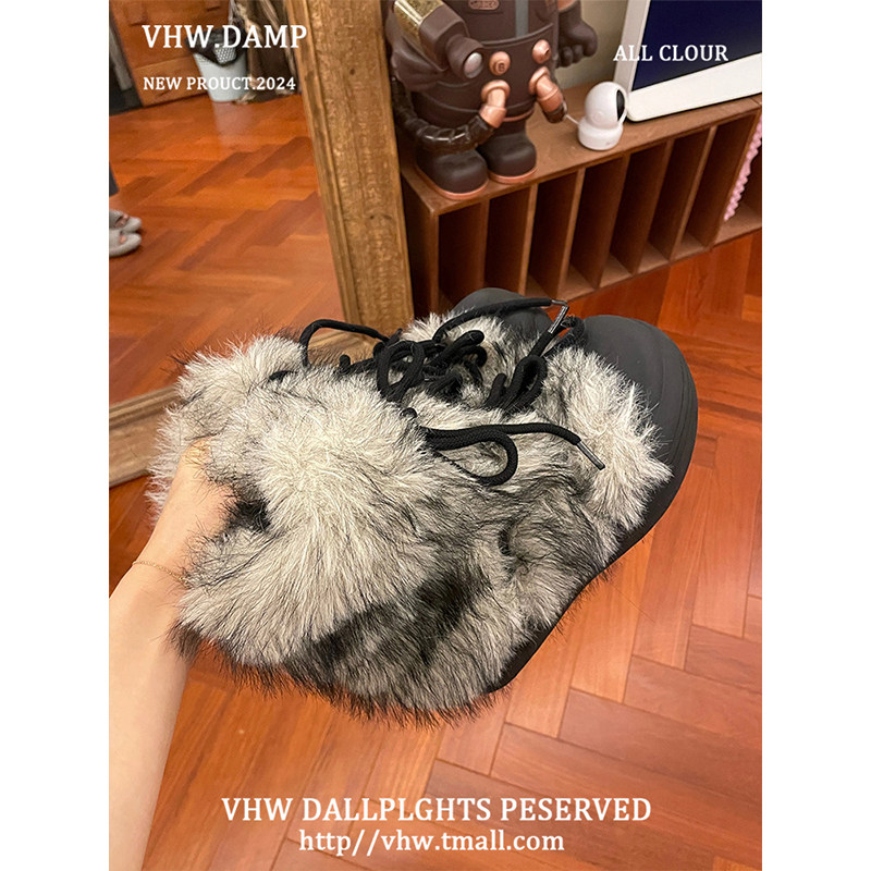 废土千禧风厚底毛毛雪地鞋女2025秋冬新款小众加绒加厚大头棉鞋子