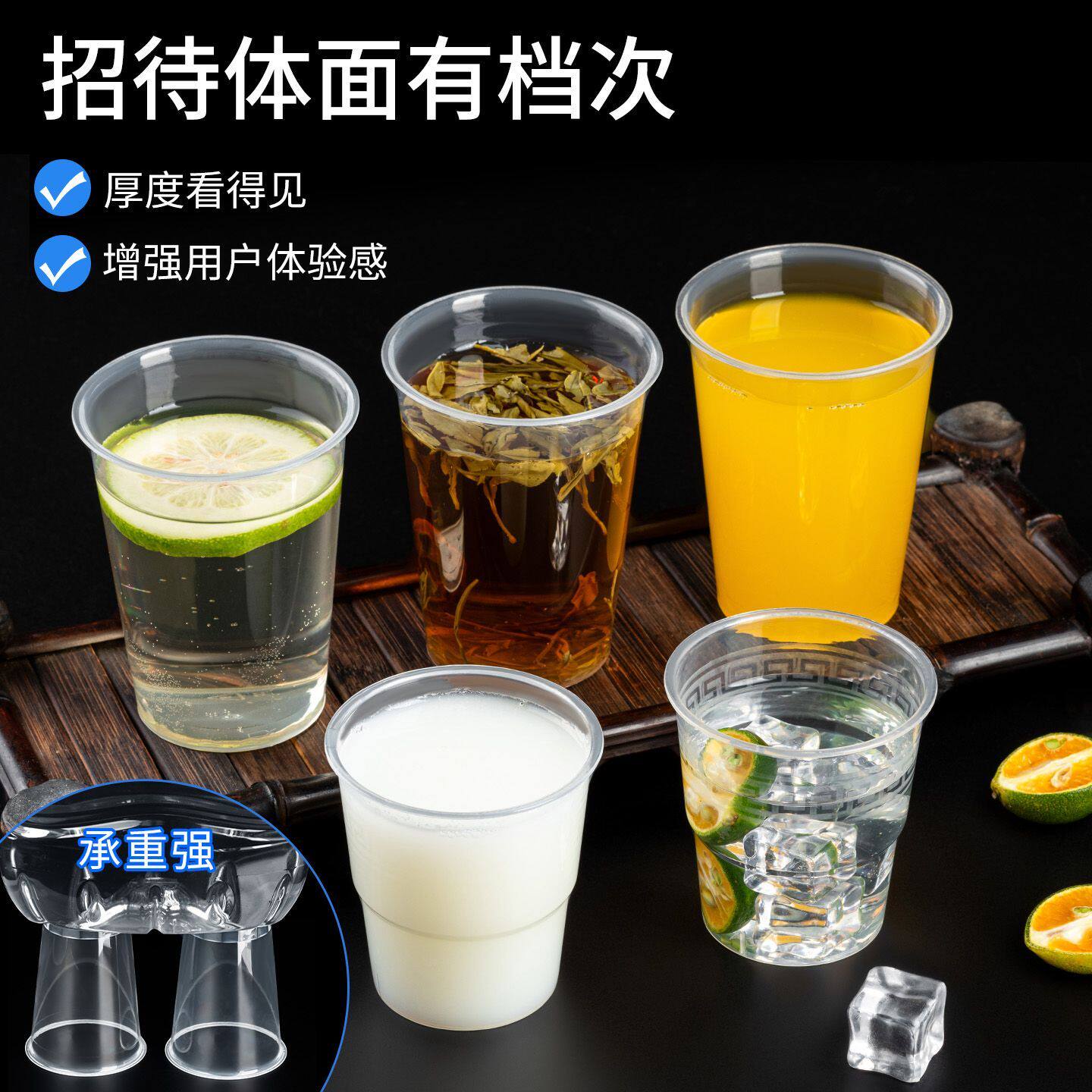 一次性杯子家用茶水杯航空杯硬质透明塑料水杯家用商用啤酒杯茶