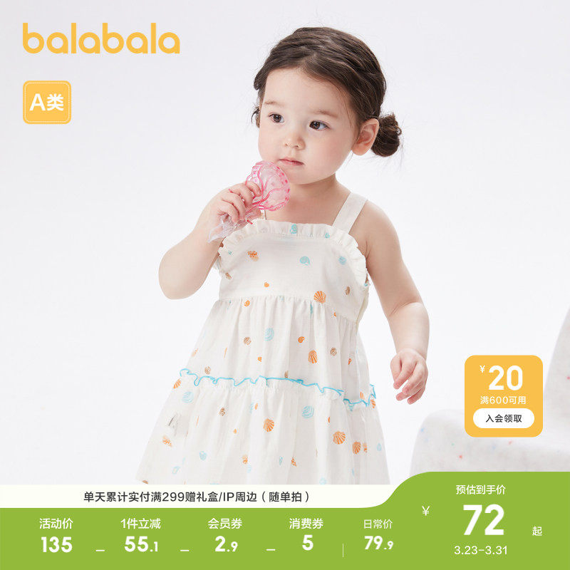 巴拉巴拉女童连衣裙宝宝裙子婴儿公主裙夏装儿童满印洋气甜美气质