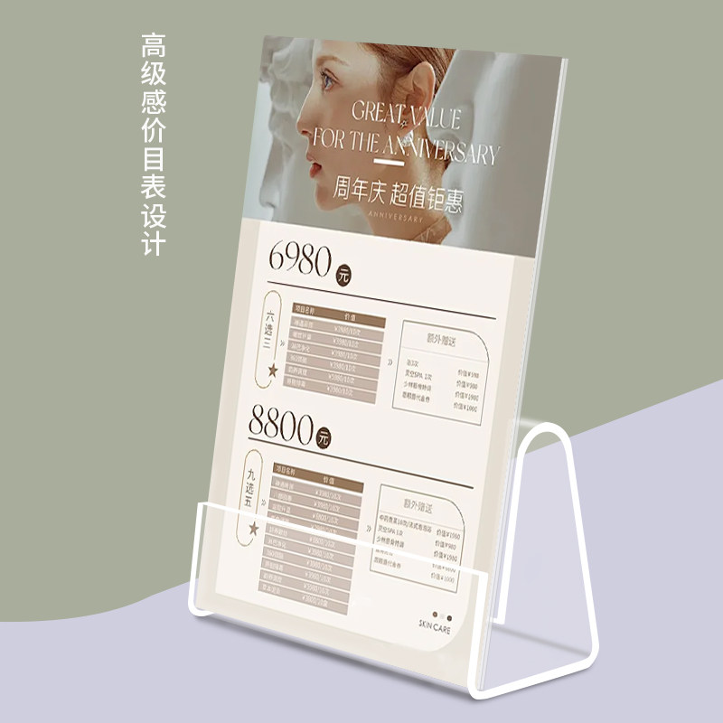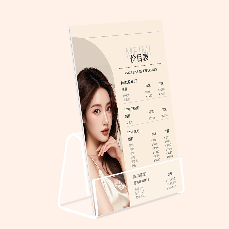 皮肤管理美容院价格表美睫美甲美发台卡亚克力摆台手持价目表定制