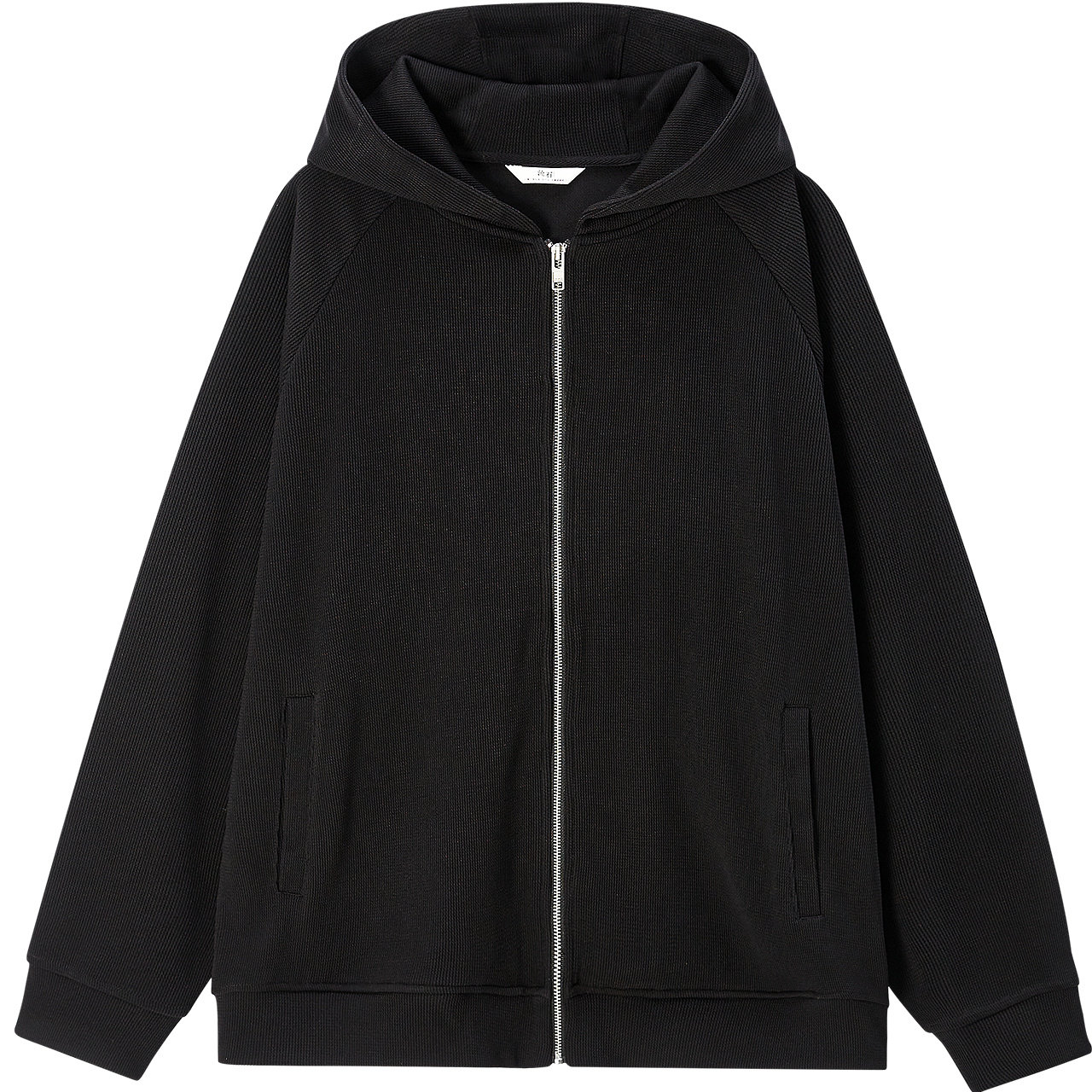 商场同款 舒适微弹针织面料 连帽拉链外套