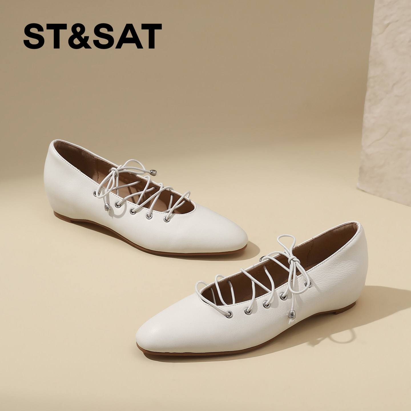 米霏!真皮~尖头铆钉平底单鞋女秋冬浅口内增高软底瓢鞋大码女鞋