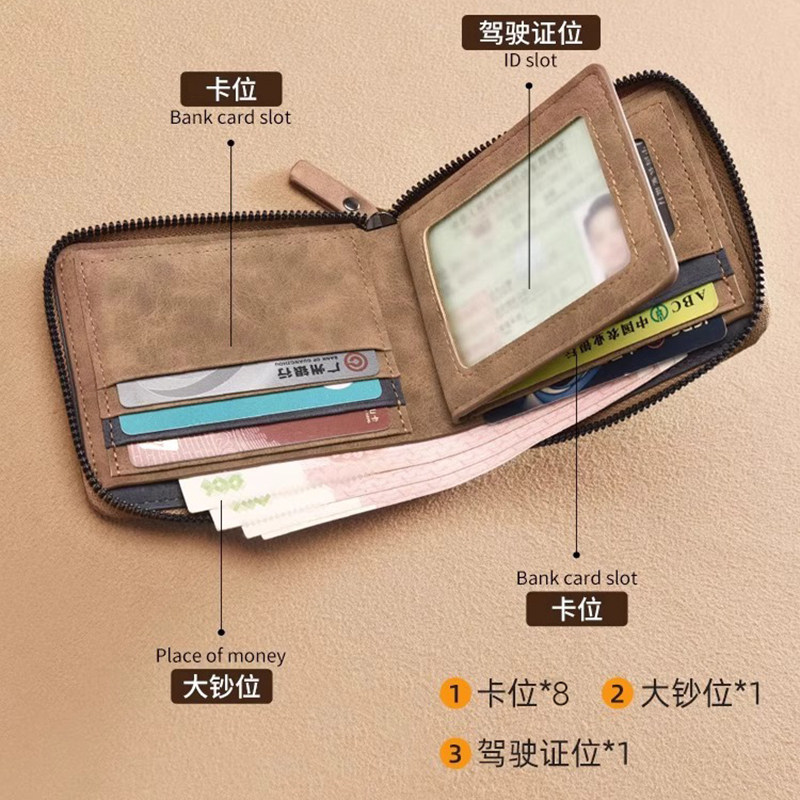 2025新款拉链钱包男款复古高级感零钱包大容量多卡位收纳证件卡包