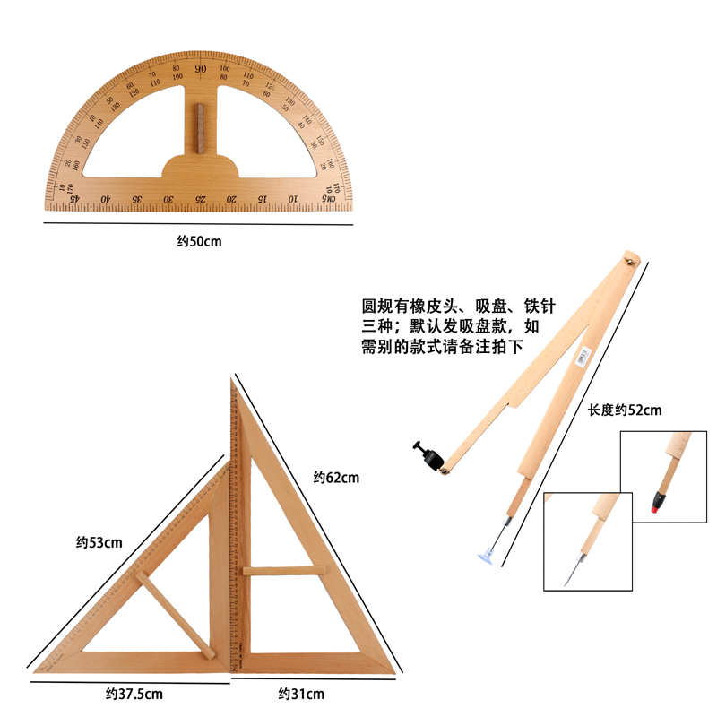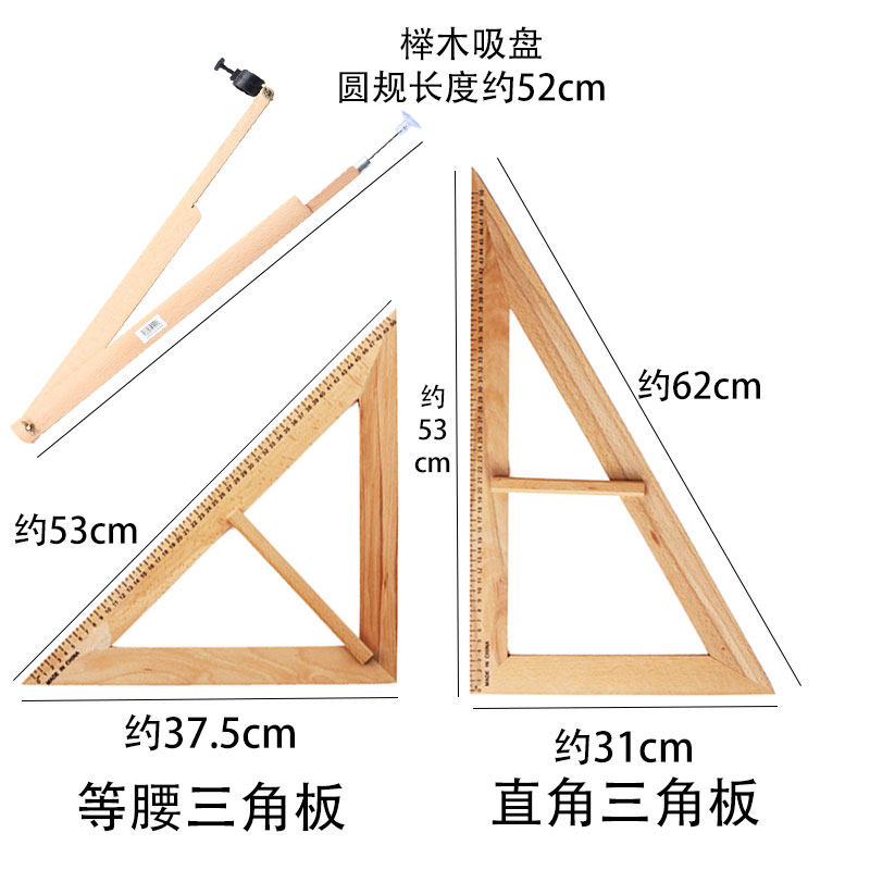 实木教学大三角板尺教师白板黑板用尺榉木手柄量角器圆规绘图套装