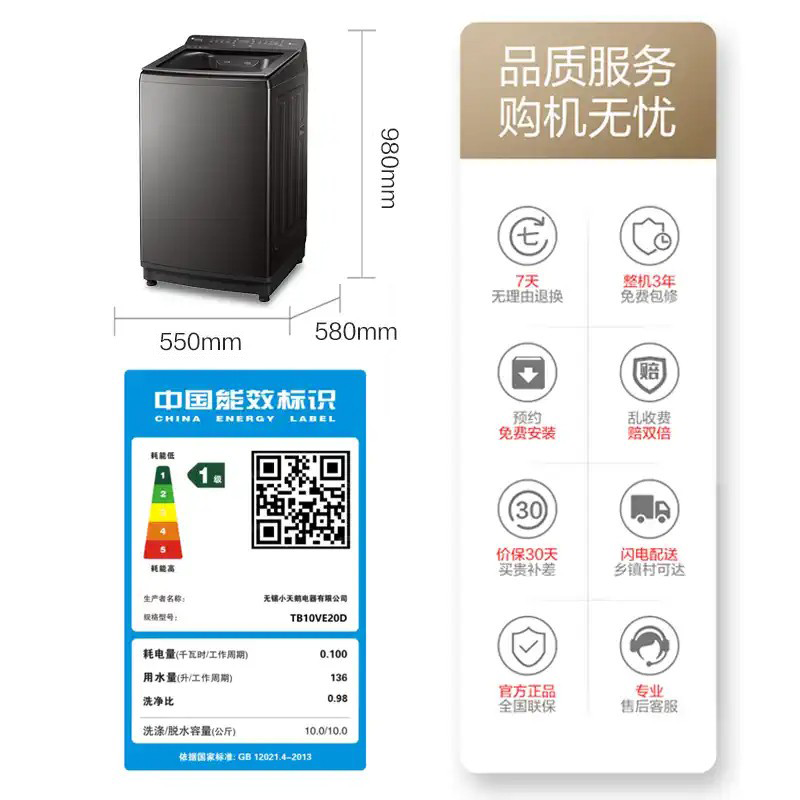以旧换新小天鹅小乌梅2.0轻奢水魔方波轮全自动10/12kg洗衣机