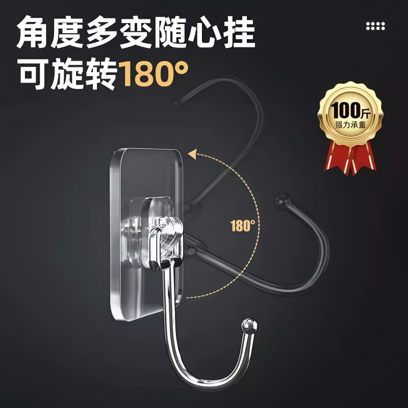 挂钩免打孔贴墙壁免钉宿舍粘钩浴室无痕承重强力粘胶透明挂钩家用