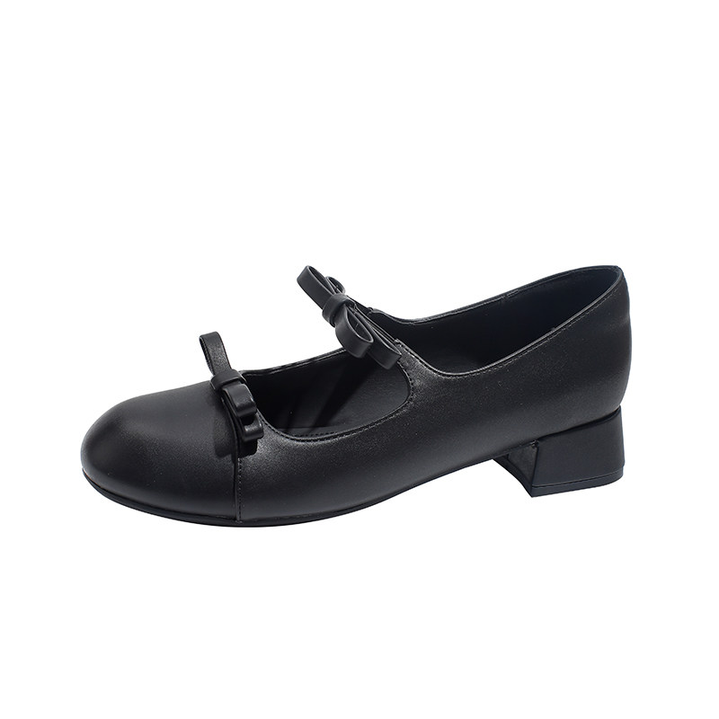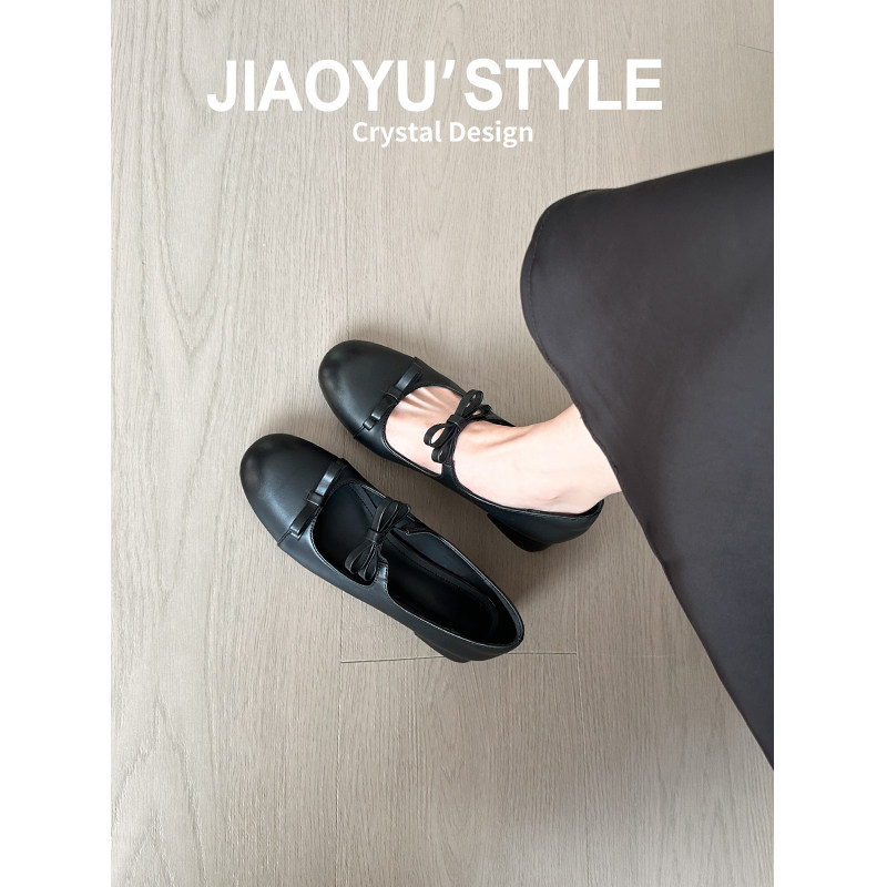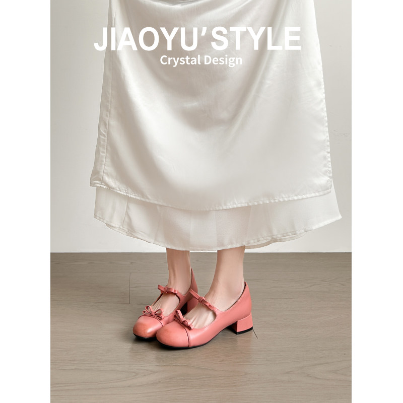 真皮~骄屿法式蝴蝶结玛丽珍高跟鞋配裙子2026春新款浅口粗跟单鞋