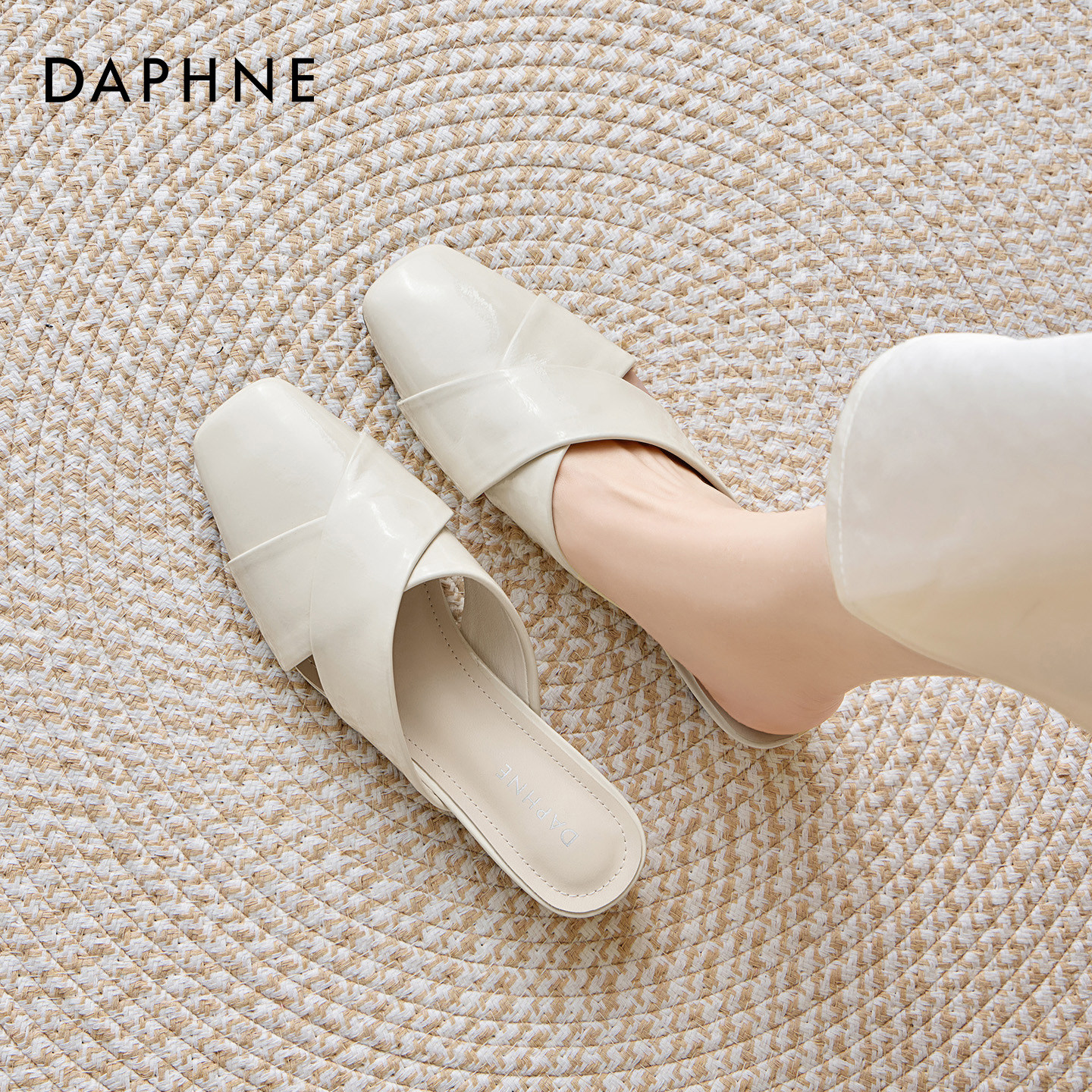 达芙妮坡跟包头半拖鞋女2026新款春夏外穿孕妇粗跟凉拖白色穆勒鞋