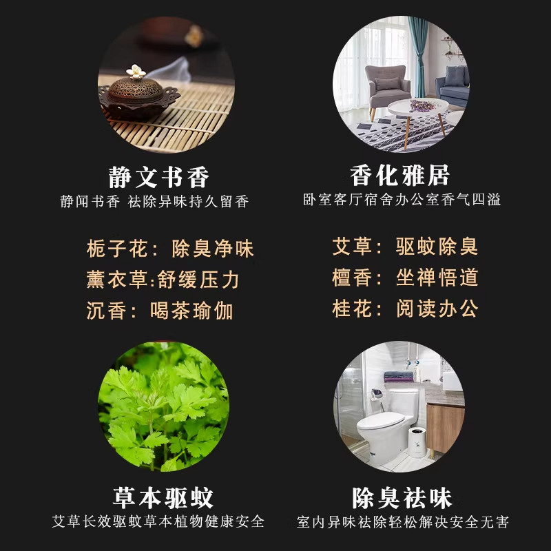 檀香盘香艾草非驱蚊香卫生间厕所净化空气沉香卧房安寝除异味母婴