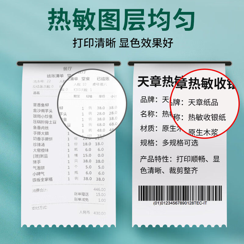 天章8060热敏收银打印纸57×50小票纸超市收银打印卷纸美团外卖纸