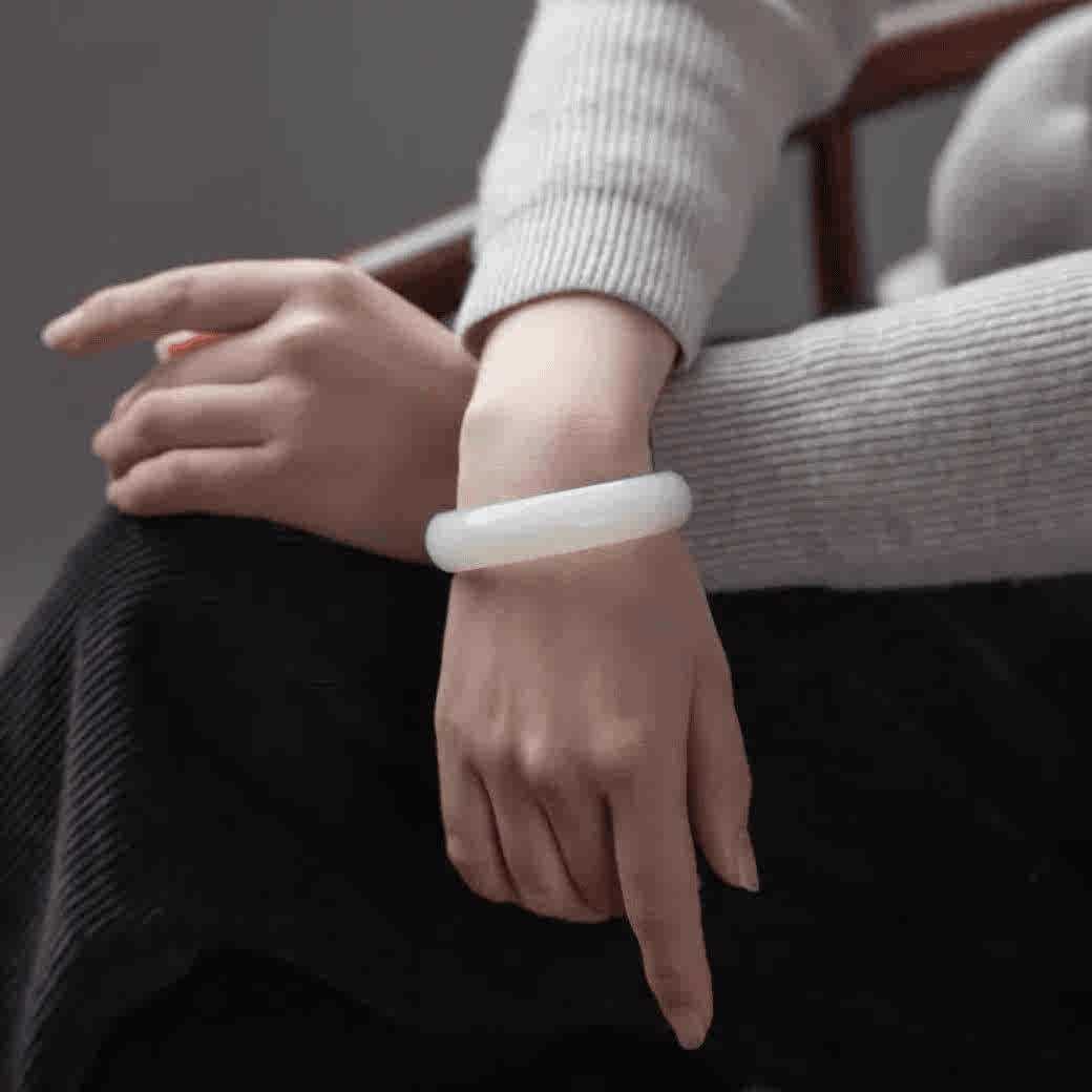 新疆和田白玉老料戈壁玉羊级脂白玉手镯旺夫真玉石镯子气质少女镯
