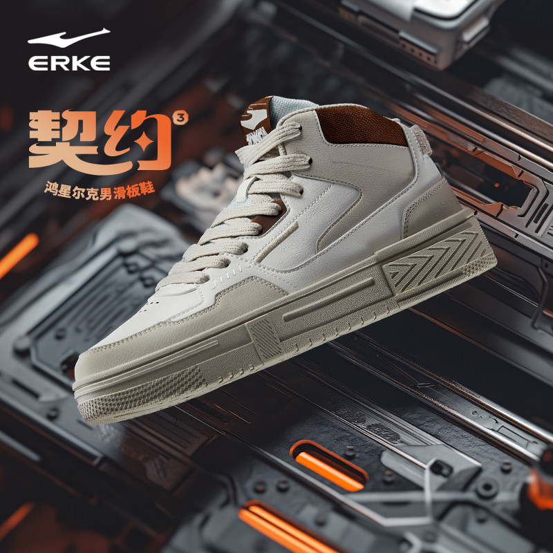 鸿星尔克板鞋男鞋冬季新款学生休闲鞋男士鞋子皮面百搭高帮运动鞋