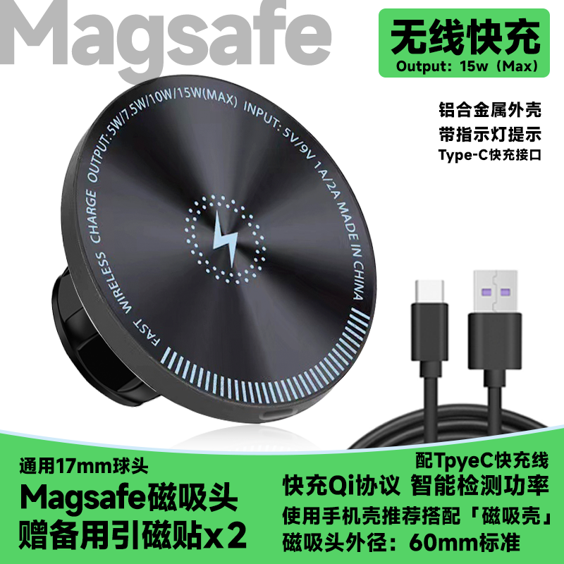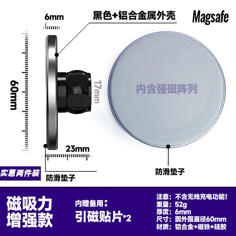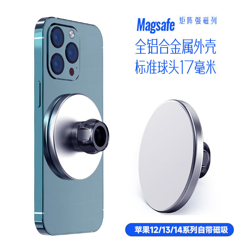 磁吸magsafe支架17mm球头手机通用铝合金属强磁铁中控仪表台桌面