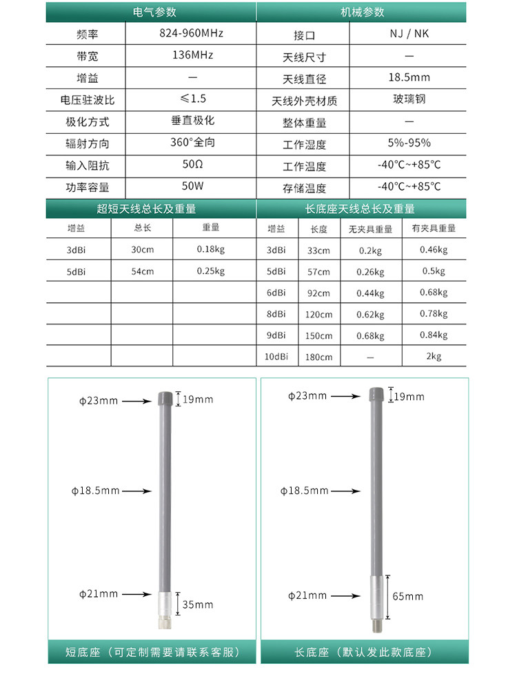824-960MHz物联网NBiot高增益室外全向玻璃钢天线lora远距离GPS测量接收发射2G4G移动B8电信B5GSMLTEFDD天线