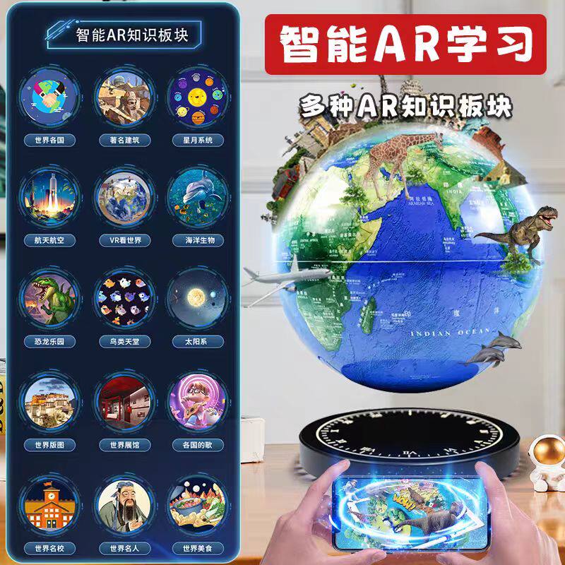AR磁悬浮地球仪蓝牙音响自动旋转发光办公漂浮送孩子生日礼物礼盒