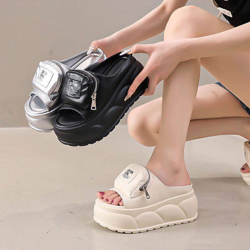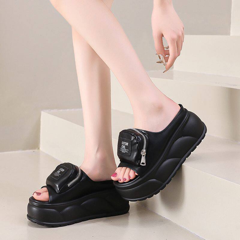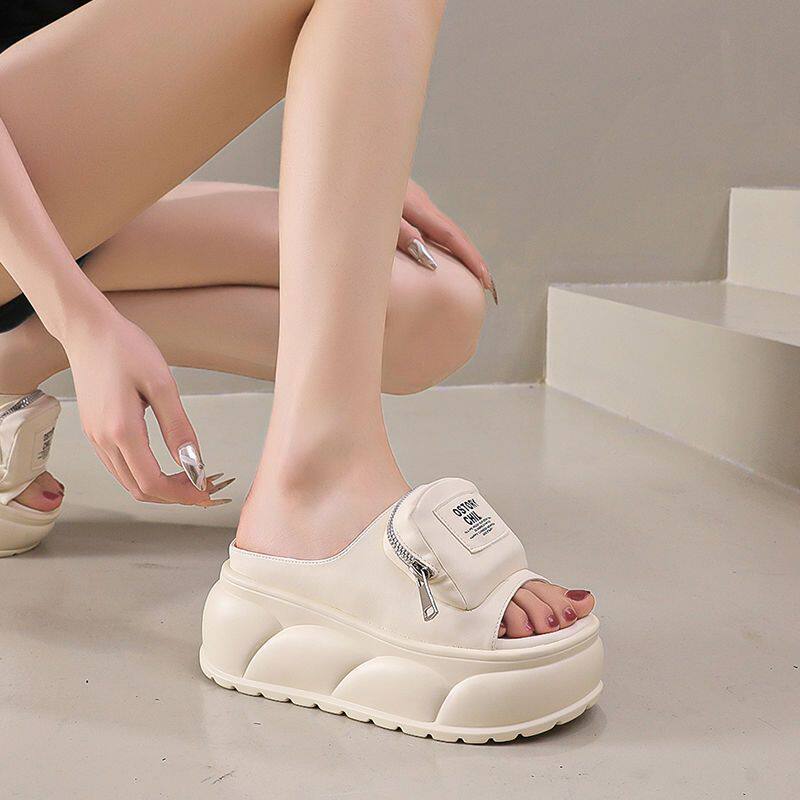品牌微瑕)厚底7cM高跟拖鞋女夏季外穿时尚超火一字拖沙滩鞋防滑