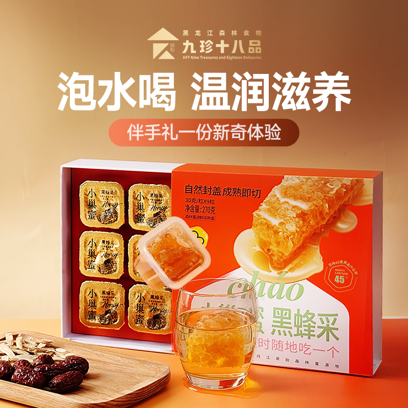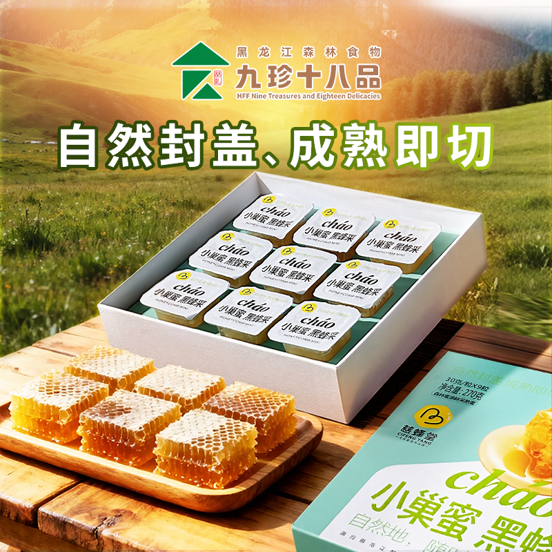 黑蜂椴树蜂巢蜜 蜂蜜纯正天然东北特产蜂蜜礼盒小包装九珍十八品