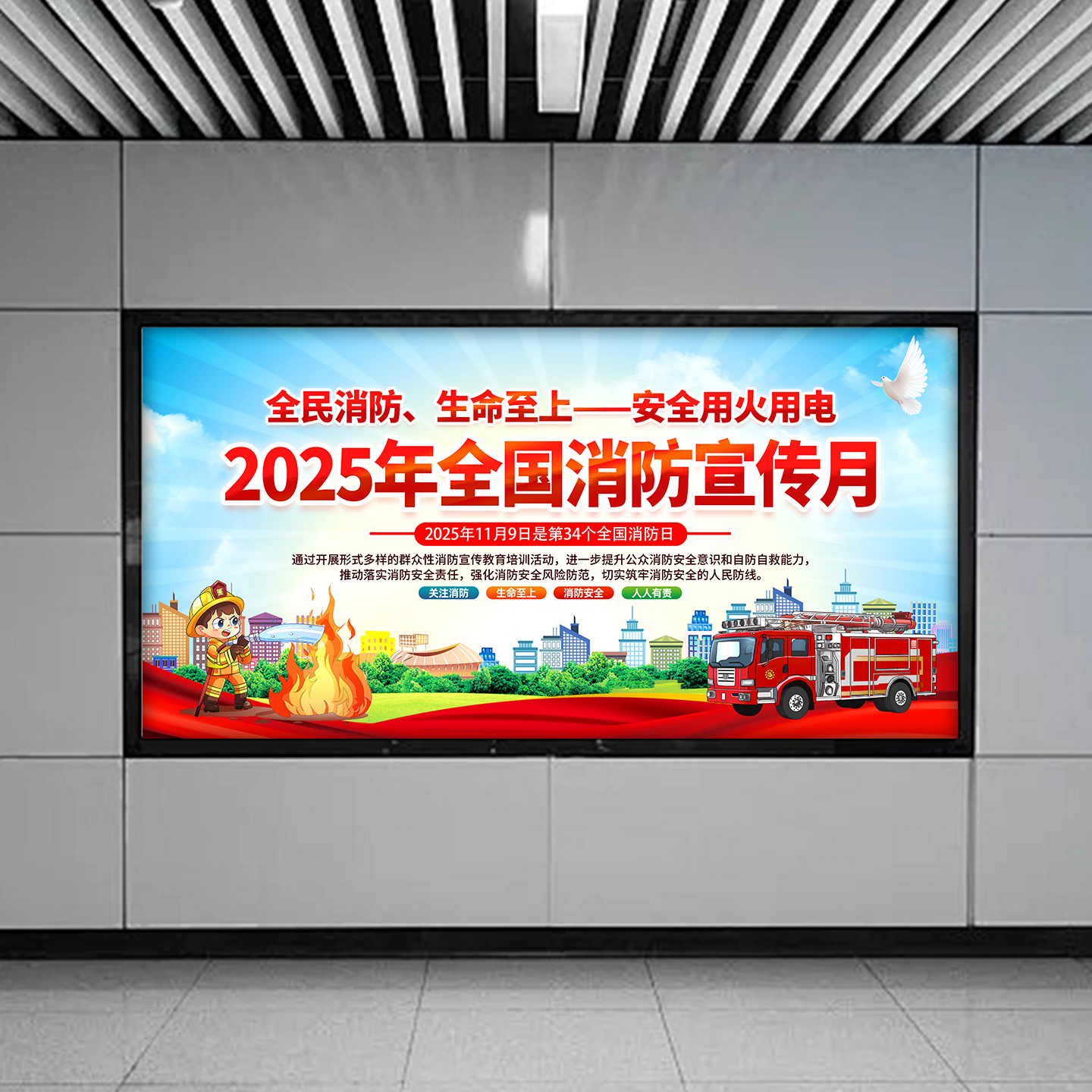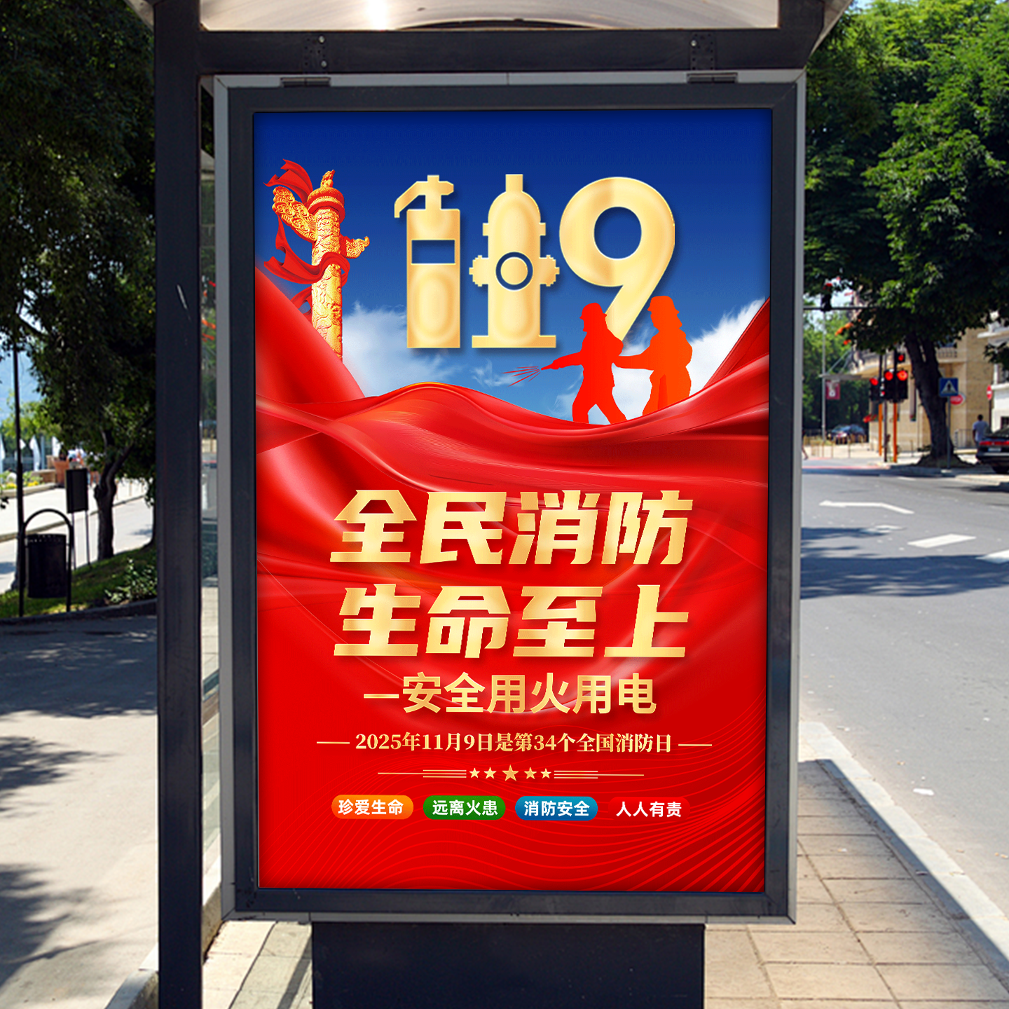 2026年消防月主题宣传海报119消防日海报工厂车间消防安全海报消防月消防安全挂图建筑工地消防安全宣传画
