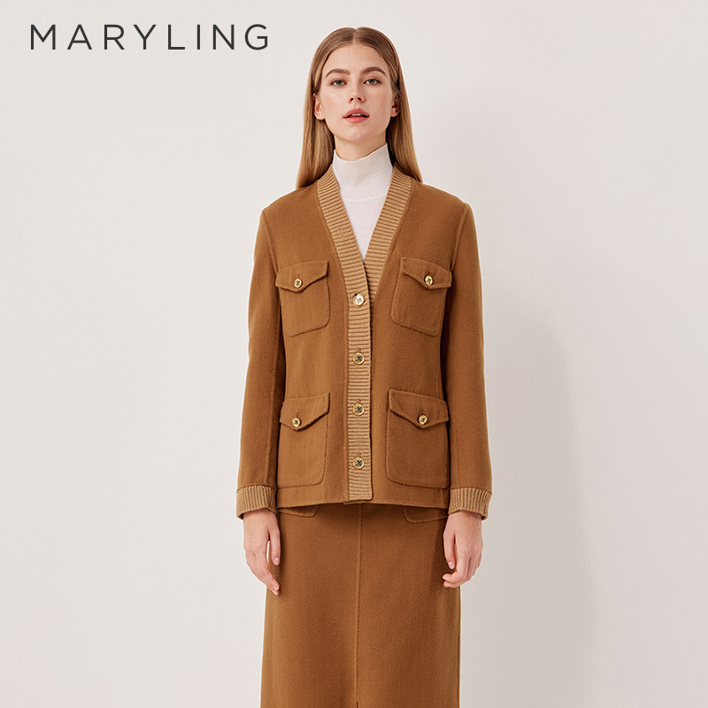 MARYLING玛俪琳2025秋季新品经典复古驼色短款大衣外套A1FGW93080