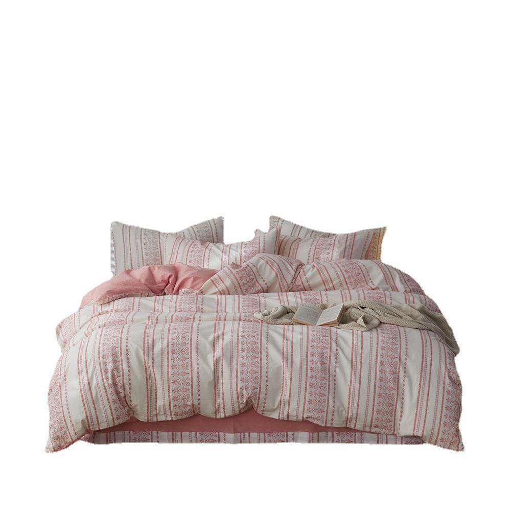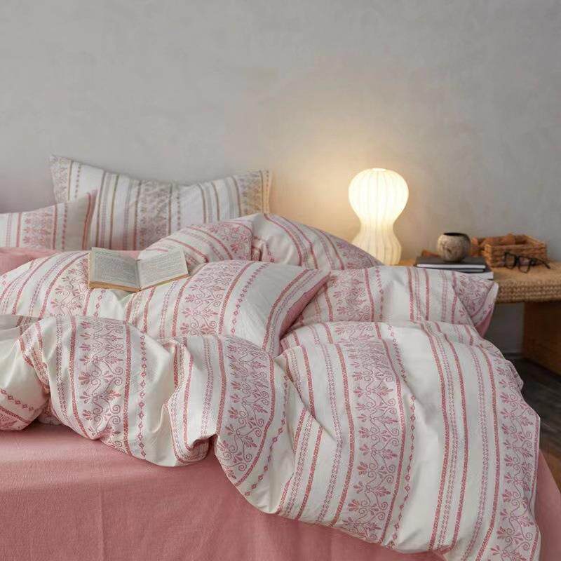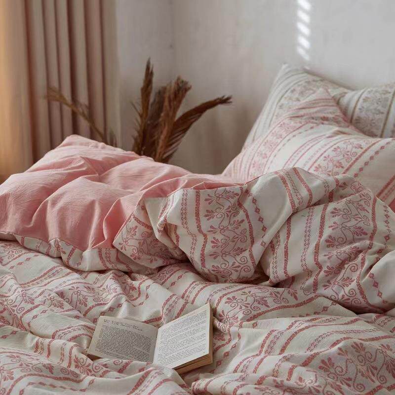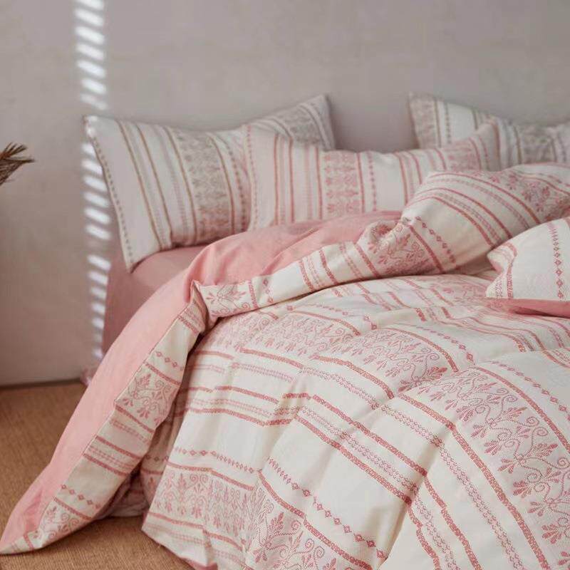 现代简约复古波西米亚粉色提花全棉民宿床上四件套被套床品1.8