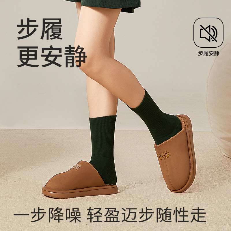 红豆踩屎感棉拖鞋女士秋冬季室内家居2025新款毛绒保暖情侣棉拖男